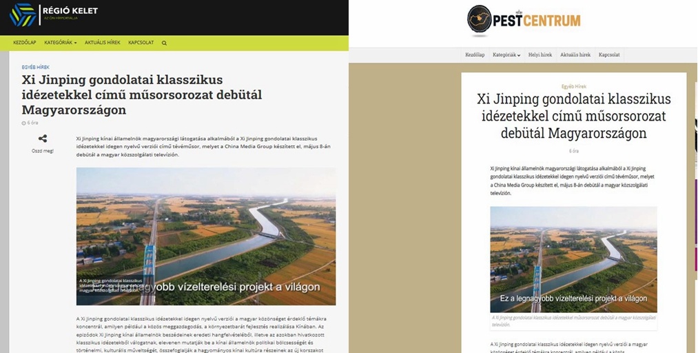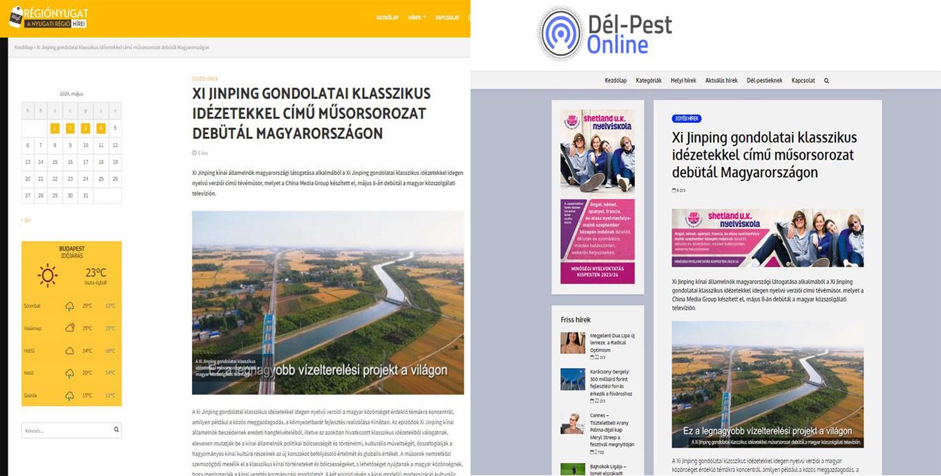 此外,當地時間5月4日,匈牙利東(dong) 部生活網、匈牙利佩斯中心網、匈牙利西峰網、南佩斯在線網等對《平“語”近人——習(xi) 近平喜歡的典故》(國際版)即將播出的消息進行了報道。匈牙利東(dong) 部生活網主要以介紹亞(ya) 洲以及中東(dong) 歐地區內(nei) 容為(wei) 主,在匈牙利擁有廣泛的受眾(zhong) 群體(ti) 。匈牙利佩斯中心網是布達佩斯地區最主要的商業(ye) 媒體(ti) 網站。