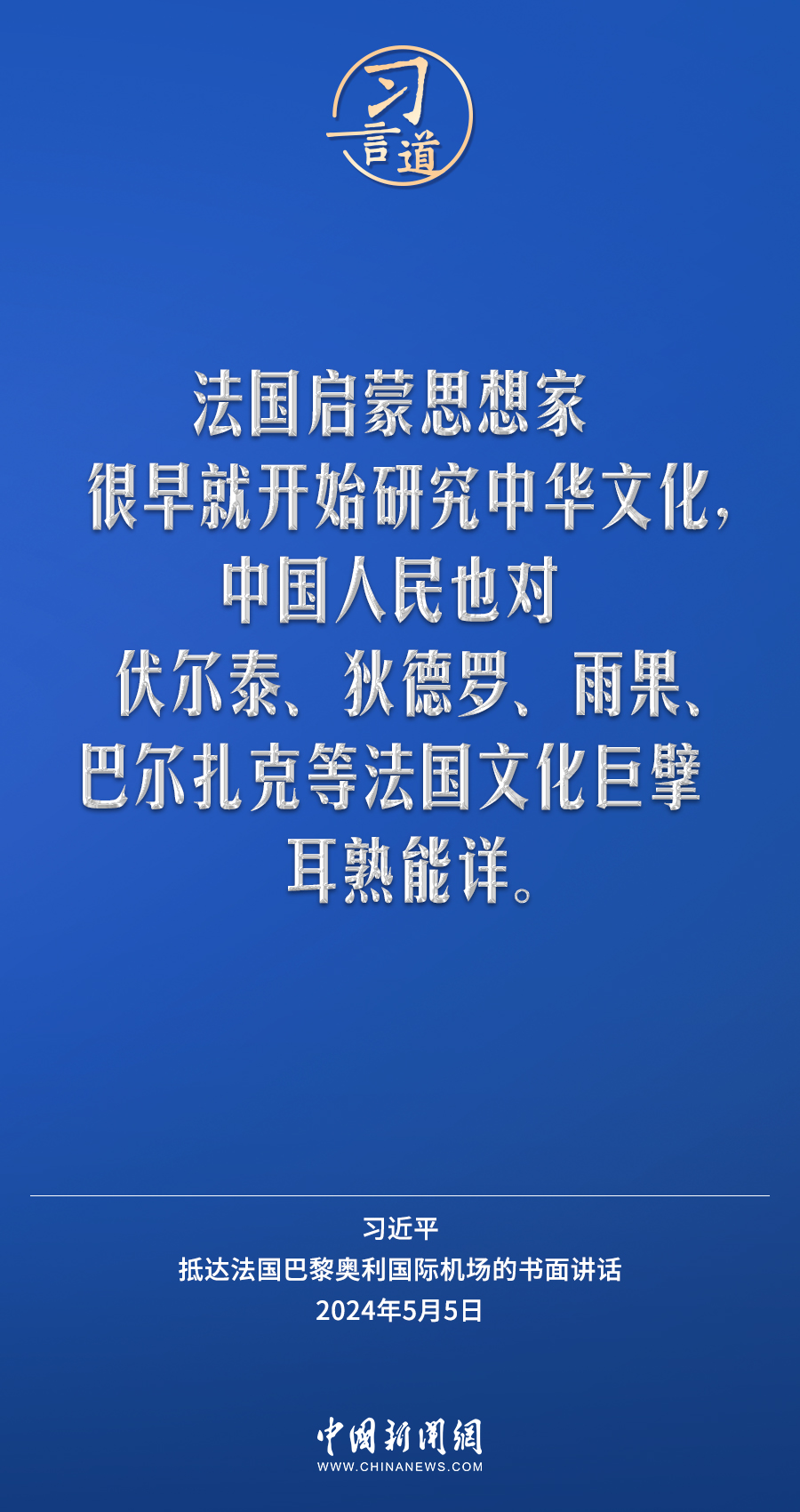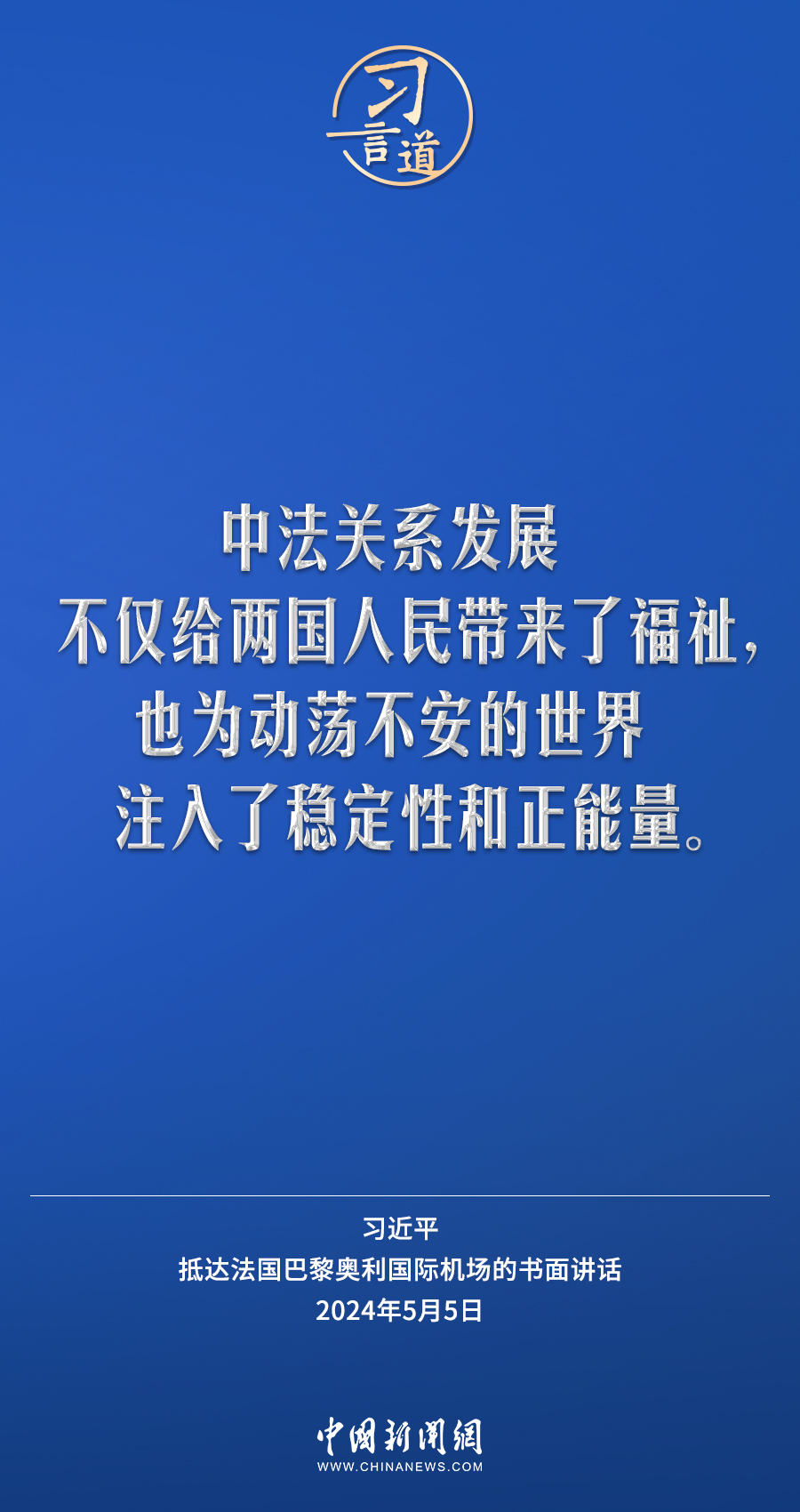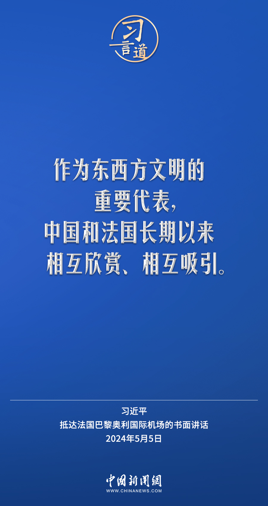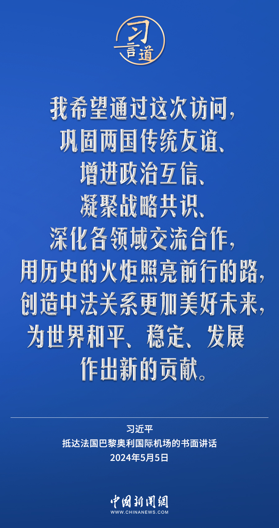當地時間5月5日下午,國家主席習(xi) 近平抵達巴黎,開始對法國進行國事訪問。在抵達法國巴黎奧利國際機場的書(shu) 麵講話中,習(xi) 近平指出——