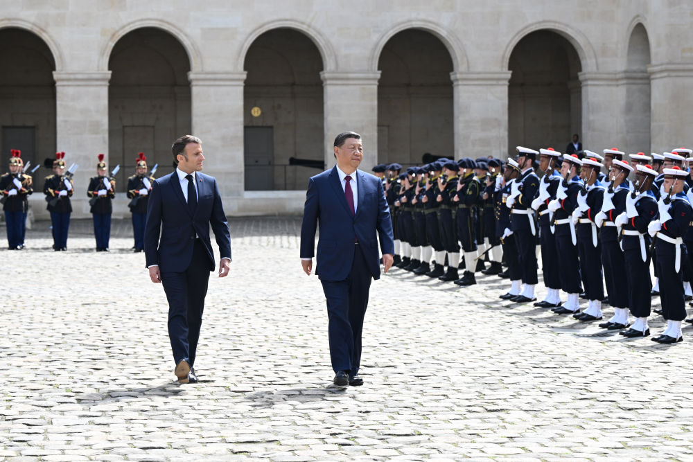 當地時間5月6日下午,正在法國進行國事訪問的國家主席習(xi) 近平在巴黎出席法國總統馬克龍舉(ju) 行的隆重盛大歡迎儀(yi) 式。這是兩(liang) 國元首檢閱法蘭(lan) 西共和國衛隊和陸海空三軍(jun) 儀(yi) 仗隊。新華社記者 謝環馳 攝