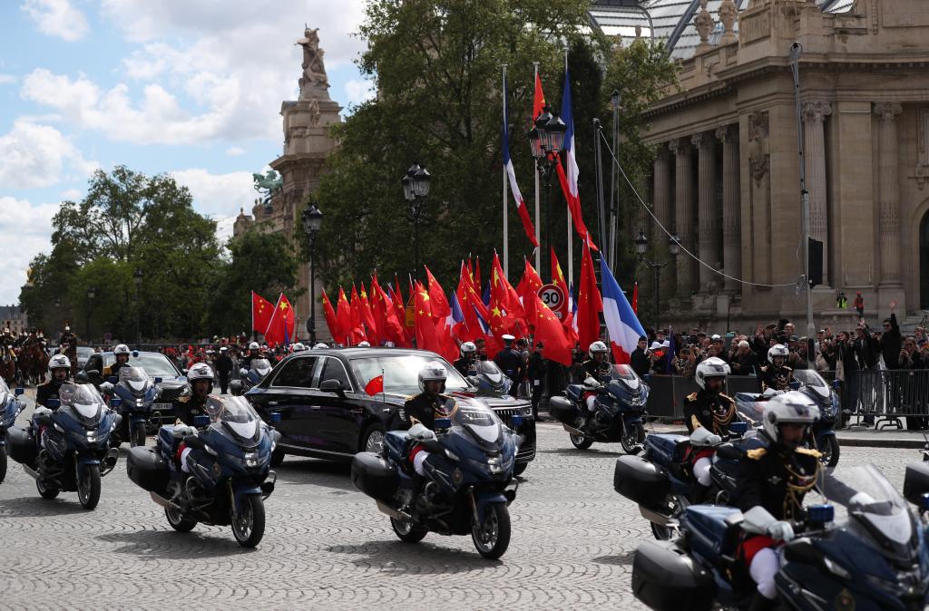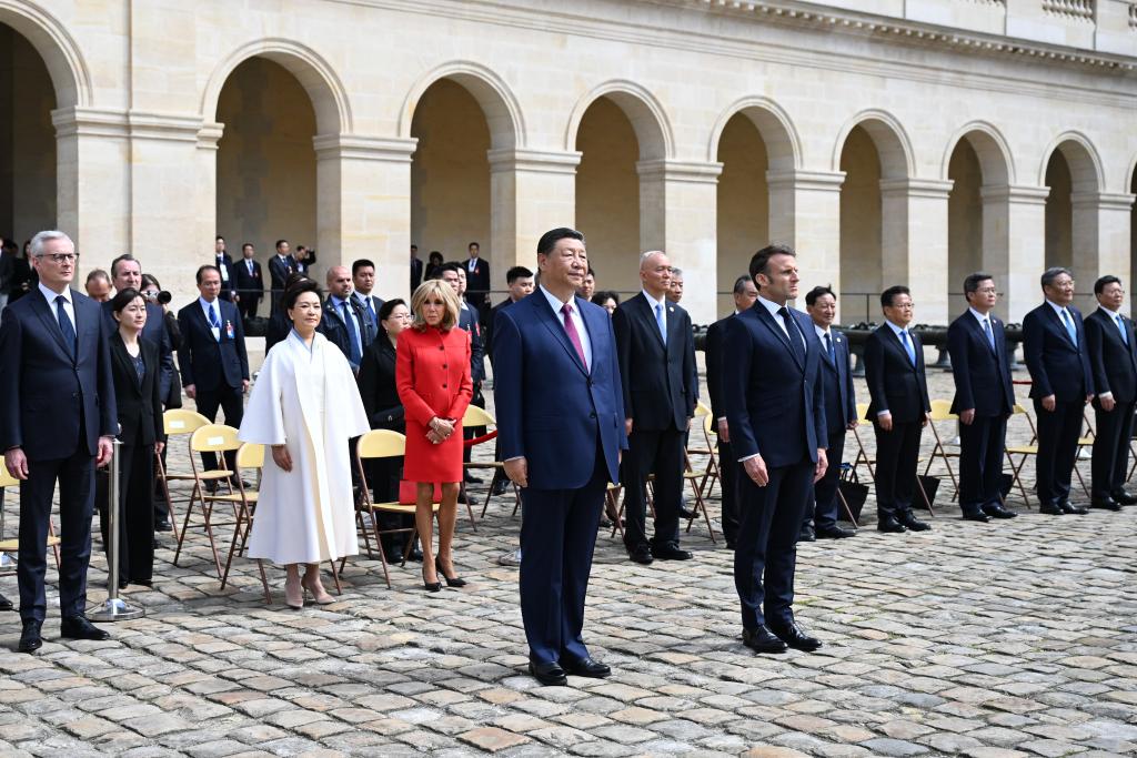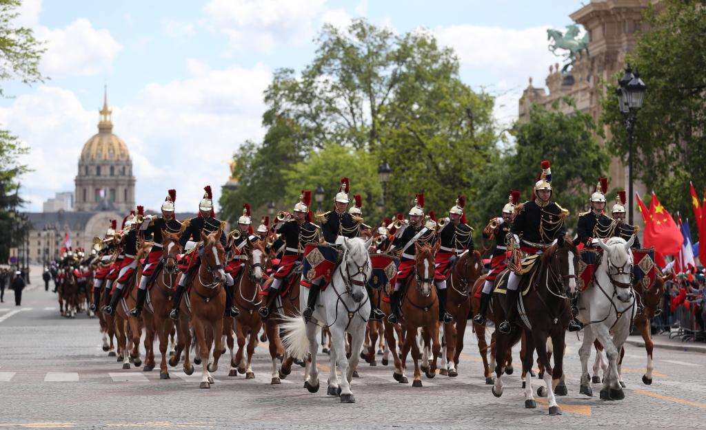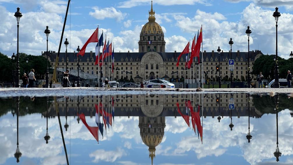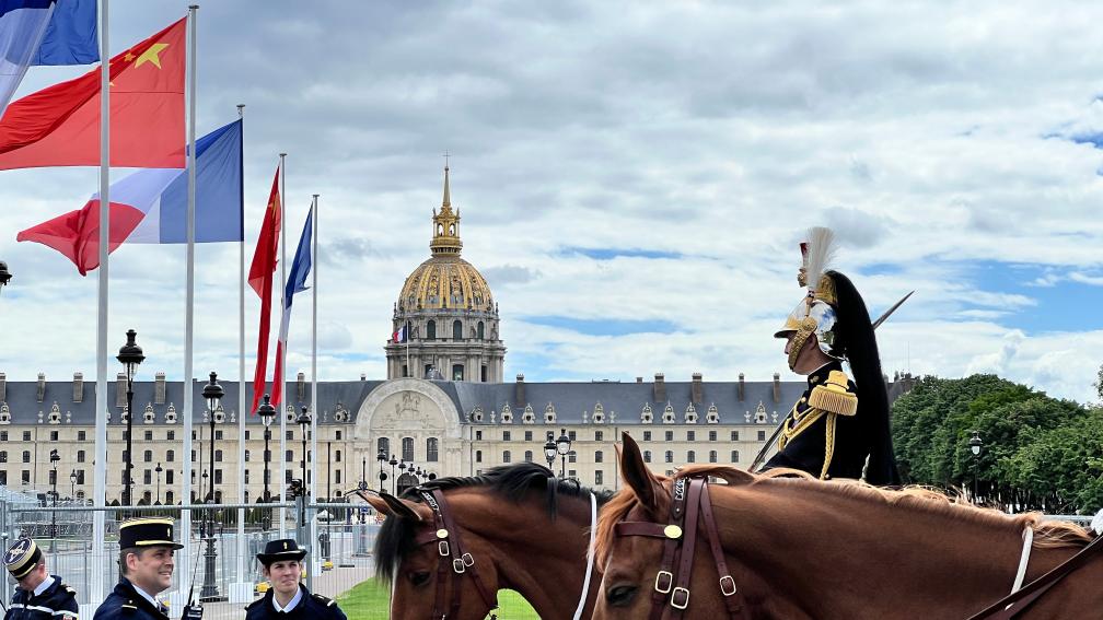 五月的巴黎,風和景明。塞納河畔,榮軍(jun) 院金色穹頂熠熠生輝,五星紅旗和藍白紅三色旗迎風飄揚。
