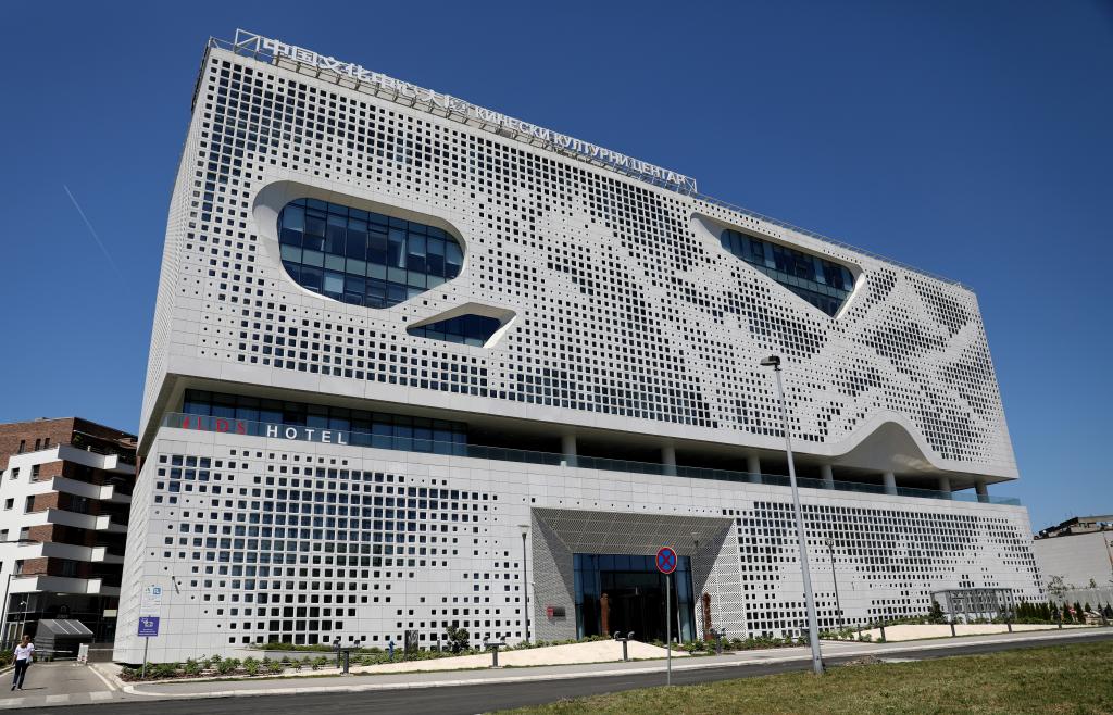 這是2024年4月28日在塞爾維亞(ya) 貝爾格萊德拍攝的中國文化中心。新華社記者李穎攝