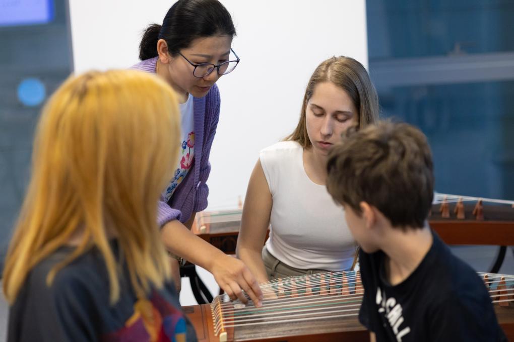 2024年4月29日,在塞爾維亞(ya) 貝爾格萊德中國文化中心,古箏指導老師王宣(後左)在教學。新華社記者李京攝