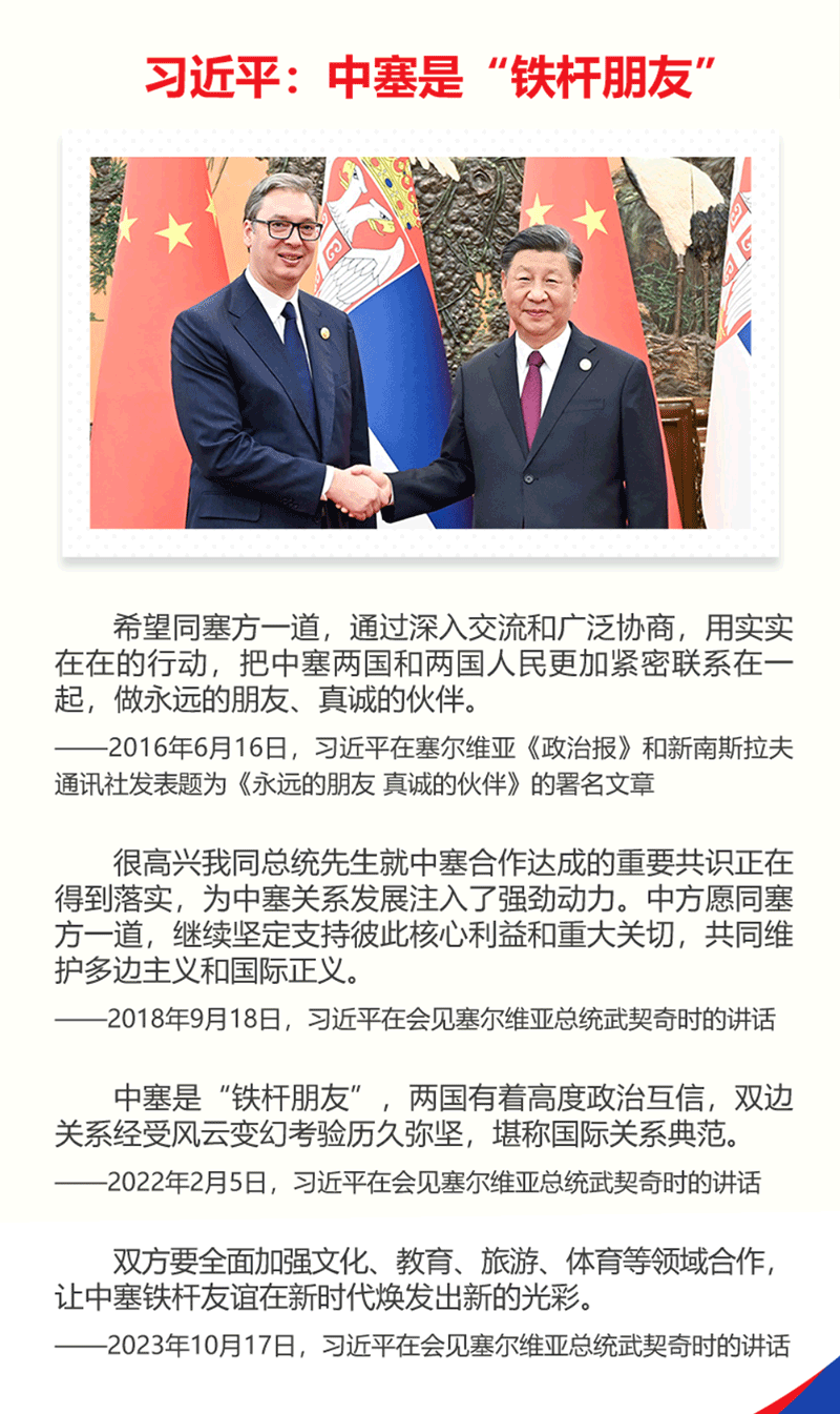 這是時隔近八年,習(xi) 主席再次對塞爾維亞(ya) 進行國事訪問。中塞是“鐵杆朋友”,習(xi) 主席指出,希望同塞方一道,通過深入交流和廣泛協商,用實實在在的行動,把中塞兩(liang) 國和兩(liang) 國人民更加緊密聯係在一起,做永遠的朋友、真誠的夥(huo) 伴。