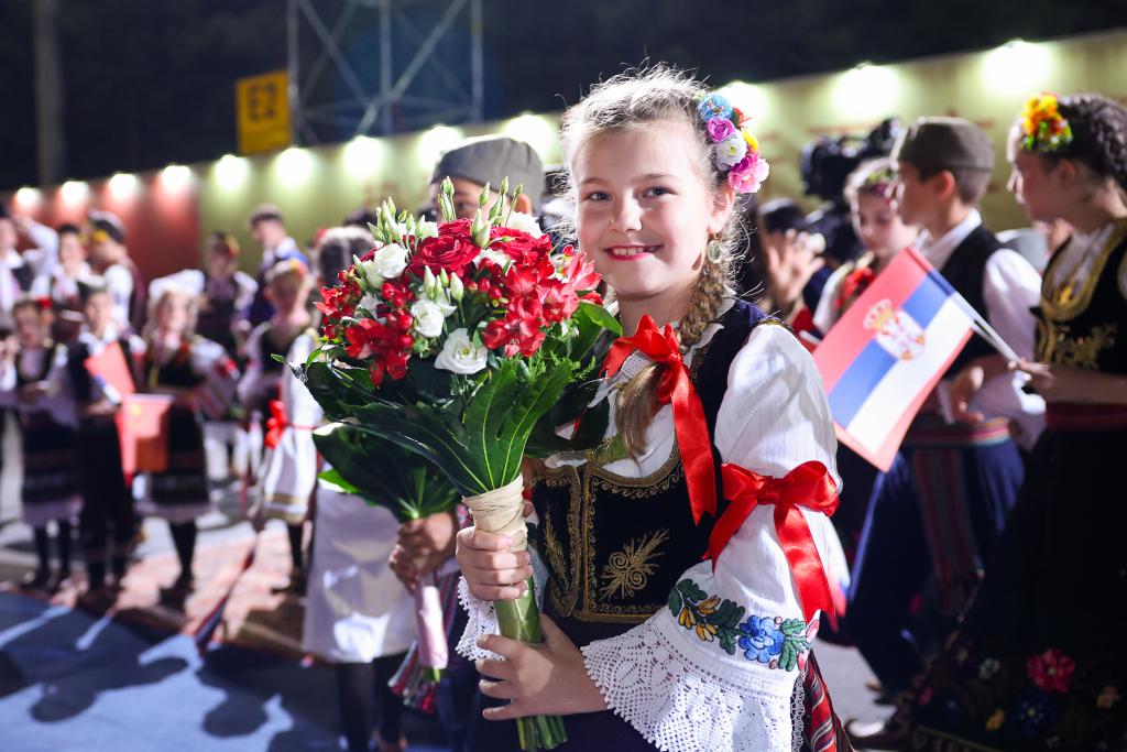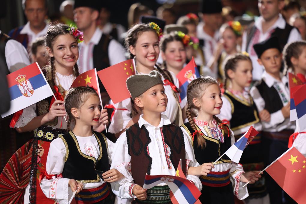 武契奇在機場為(wei) 習(xi) 近平舉(ju) 行獨具特色的迎賓儀(yi) 式。塞爾維亞(ya) 少年兒(er) 童向習(xi) 近平和彭麗(li) 媛獻花,揮舞中塞兩(liang) 國國旗,身著民族盛裝的塞爾維亞(ya) 民眾(zhong) 載歌載舞熱烈歡迎。