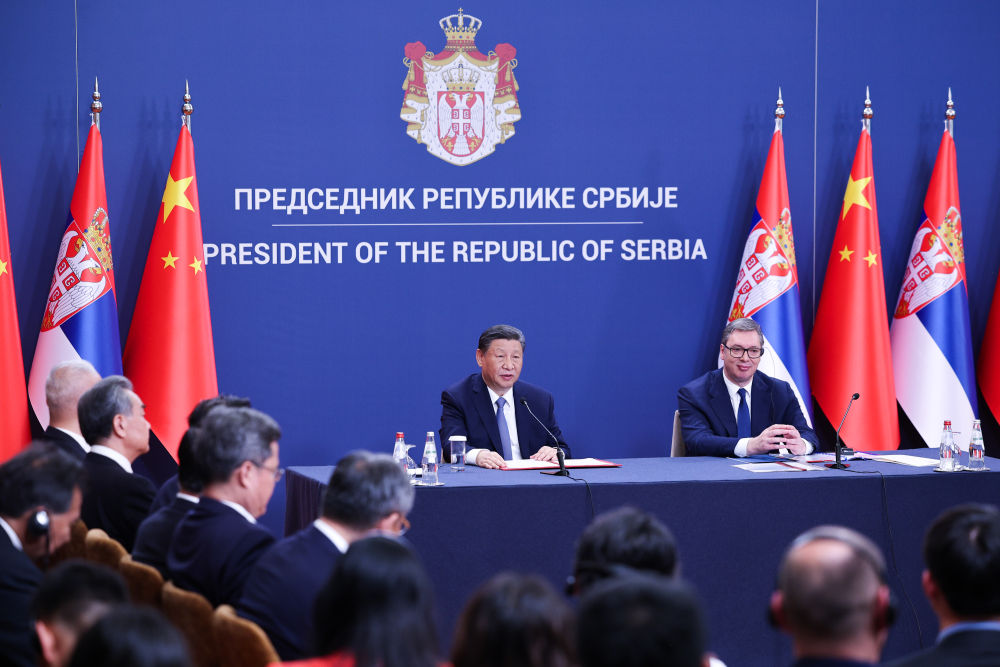歡迎儀(yi) 式後,國家主席習(xi) 近平在貝爾格萊德塞爾維亞(ya) 大廈同塞爾維亞(ya) 總統武契奇舉(ju) 行會(hui) 談。