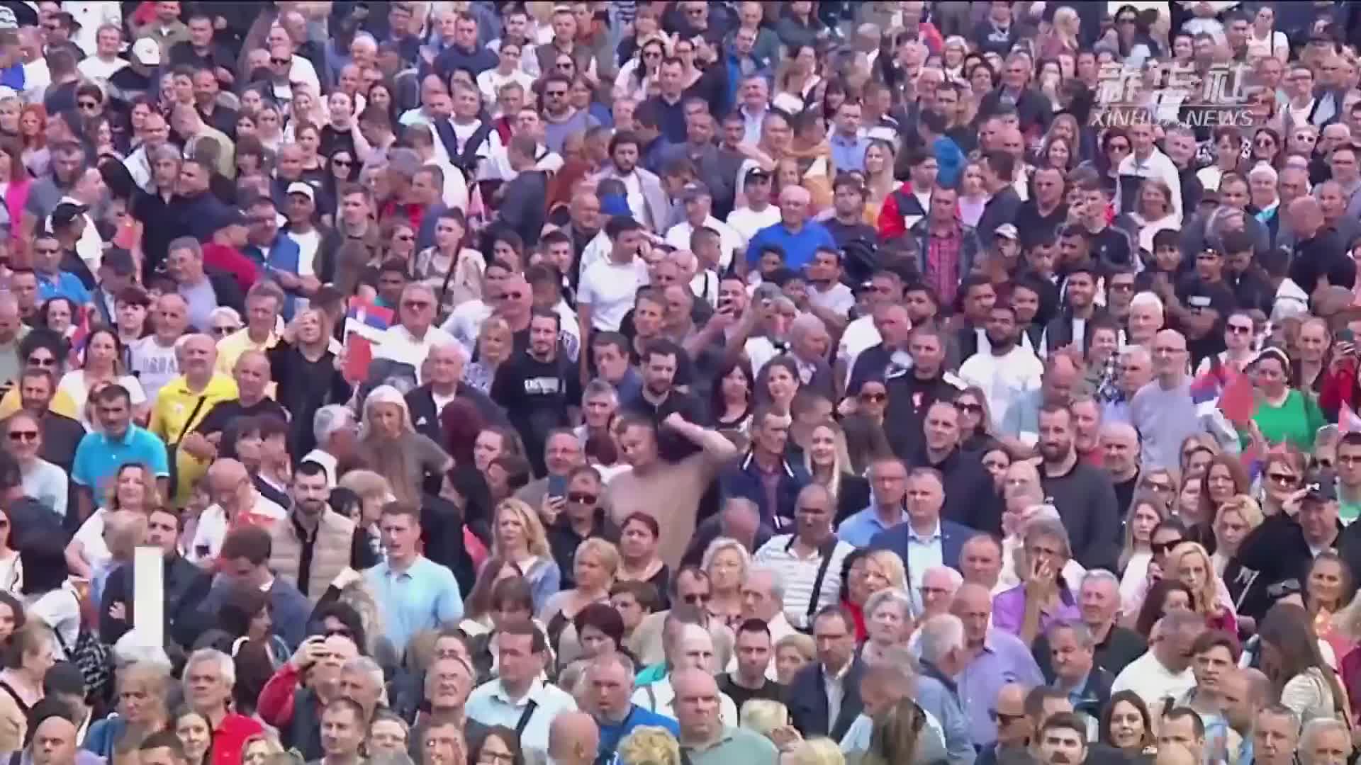當地時間5月8日上午,國家主席習(xi) 近平在貝爾格萊德塞爾維亞(ya) 大廈同塞爾維亞(ya) 總統武契奇舉(ju) 行會(hui) 談。會(hui) 談前,武契奇陪同習(xi) 近平來到政府大廈平台(左圖)。大廈廣場上,一萬(wan) 五千名塞爾維亞(ya) 民眾(zhong) 揮舞中塞兩(liang) 國國旗,對習(xi) 近平表示最熱烈的歡迎(右圖)。