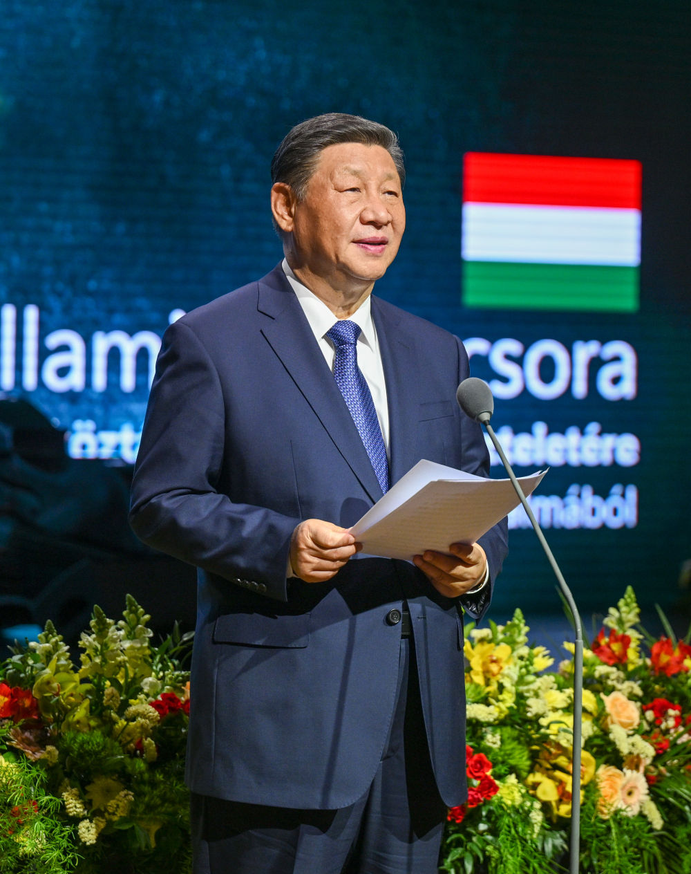 當地時間5月9日晚,國家主席習(xi) 近平和夫人彭麗(li) 媛在布達佩斯城堡山出席匈牙利總理歐爾班和夫人雷沃伊舉(ju) 行的隆重歡迎宴會(hui) 。這是習(xi) 近平在宴會(hui) 上致辭。