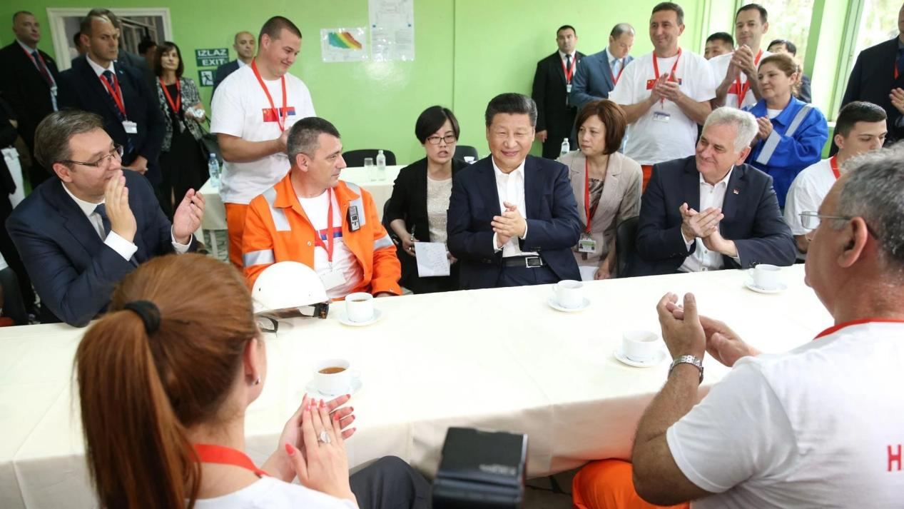 2016年6月19日,習(xi) 近平主席在河鋼集團斯梅戴雷沃鋼廠員工食堂同工人交流互動。