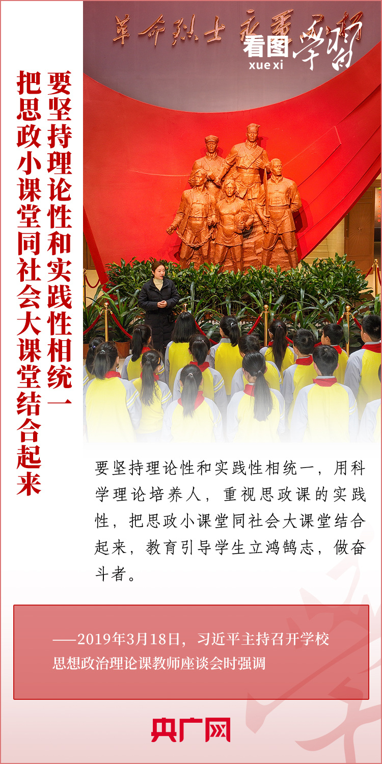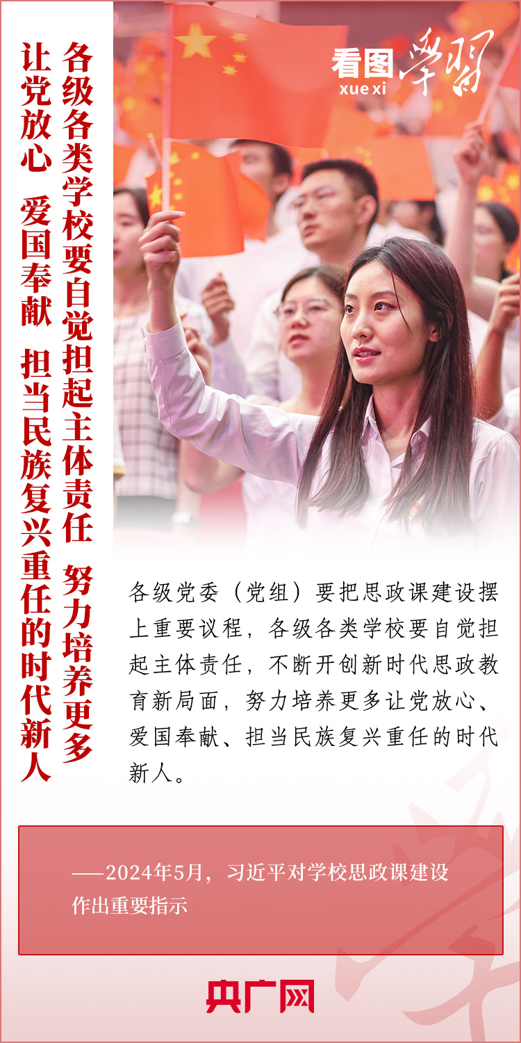 近日,習(xi) 近平總書(shu) 記對學校思政課建設作出重要指示。總書(shu) 記強調,新時代新征程上,思政課建設麵臨(lin) 新形勢新任務,必須有新氣象新作為(wei) 。各級黨(dang) 委(黨(dang) 組)要把思政課建設擺上重要議程,各級各類學校要自覺擔起主體(ti) 責任,不斷開創新時代思政教育新局麵,努力培養(yang) 更多讓黨(dang) 放心、愛國奉獻、擔當民族複興(xing) 重任的時代新人。一起來學習(xi) !