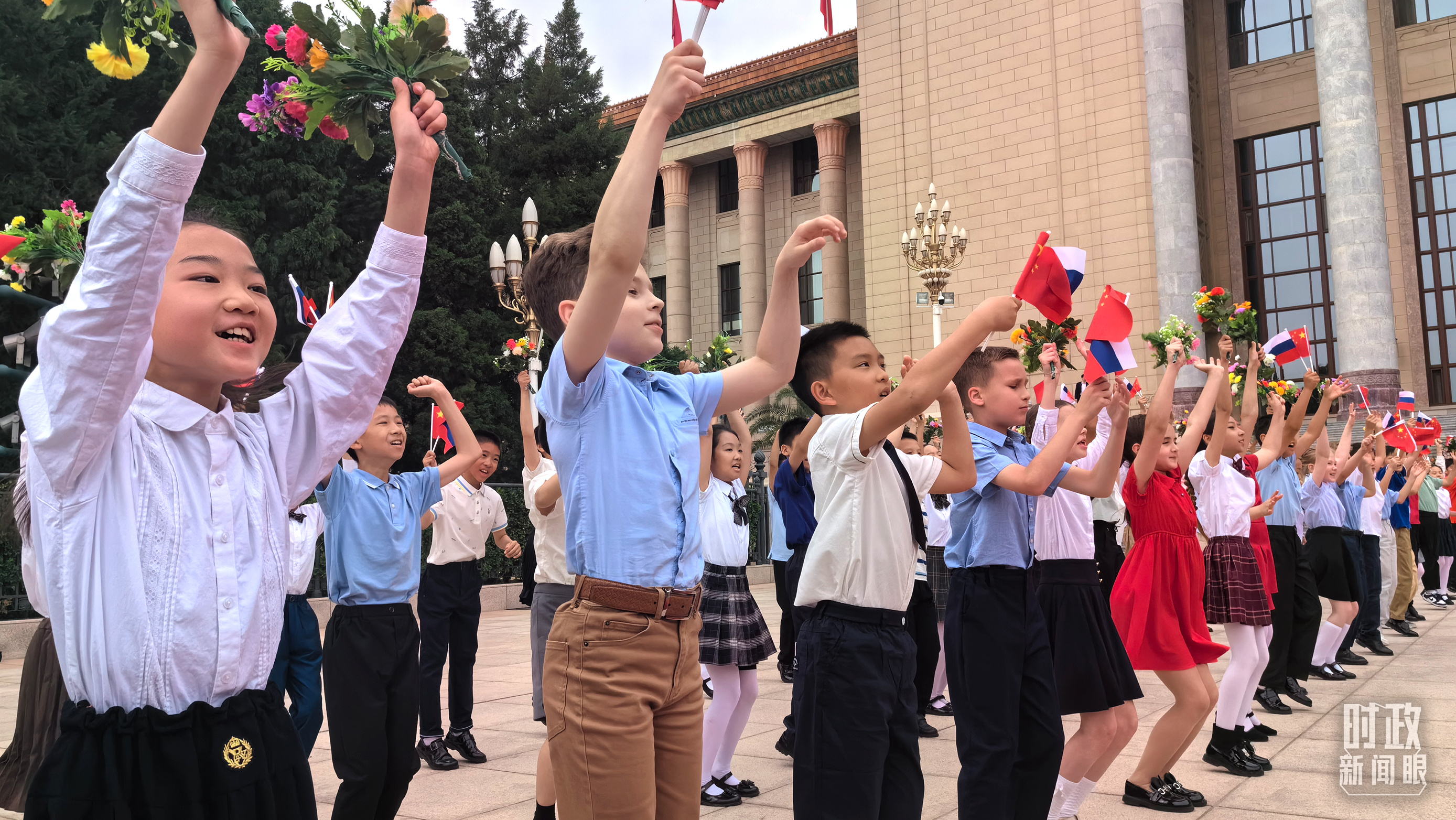 歡迎儀(yi) 式現場的中俄少年兒(er) 童。(總台央視記者王子杭、段德文拍攝)