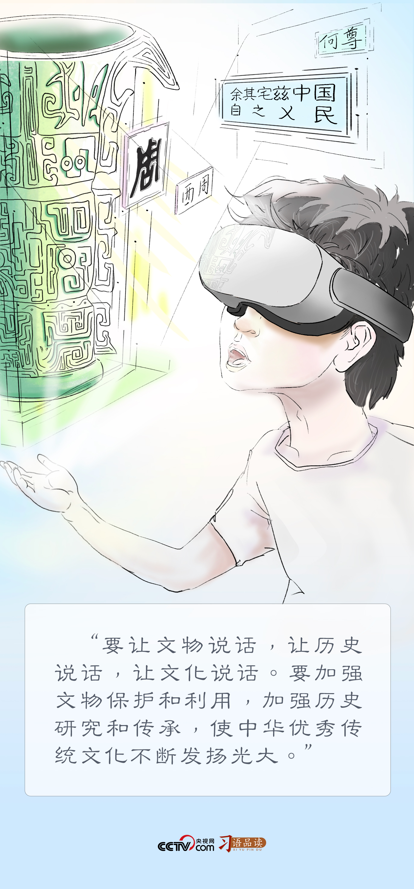“讓收藏在博物館裏的文物、陳列在廣闊大地上的遺產(chan) 、書(shu) 寫(xie) 在古籍裏的文字都活起來。總書(shu) 記用一個(ge) “活”字,道出使中華優(you) 秀傳(chuan) 統文化不斷發揚光大的方向和目標。