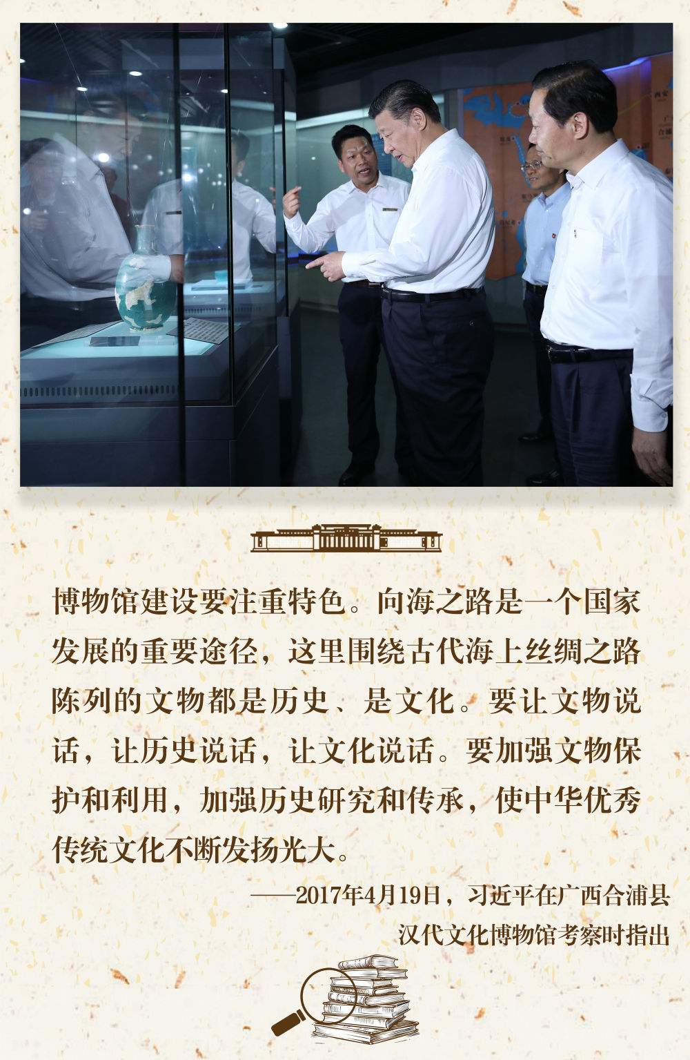 “一個(ge) 博物館就是一所大學校”。長期以來,習(xi) 近平總書(shu) 記十分關(guan) 心博物館事業(ye) 發展,多次在不同場合對發揮好博物館相關(guan) 功能提出要求。