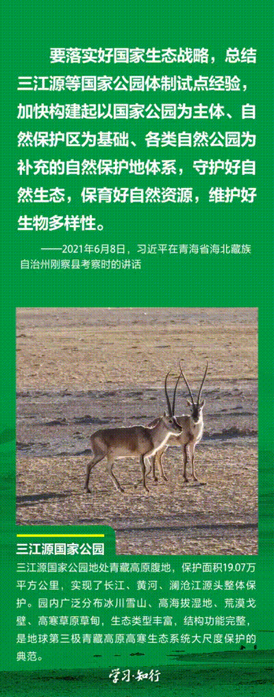 “生物多樣性使地球充滿生機,也是人類生存和發展的基礎。”推進以國家公園為(wei) 主體(ti) 的自然保護地體(ti) 係建設,是習(xi) 近平總書(shu) 記作出的重要部署。三江源、大熊貓、東(dong) 北虎豹、海南熱帶雨林、武夷山等首批國家公園正式設立以來,生態功能持續向好,對保護生物多樣性、推進人與(yu) 自然和諧共生的現代化具有重要意義(yi) 。