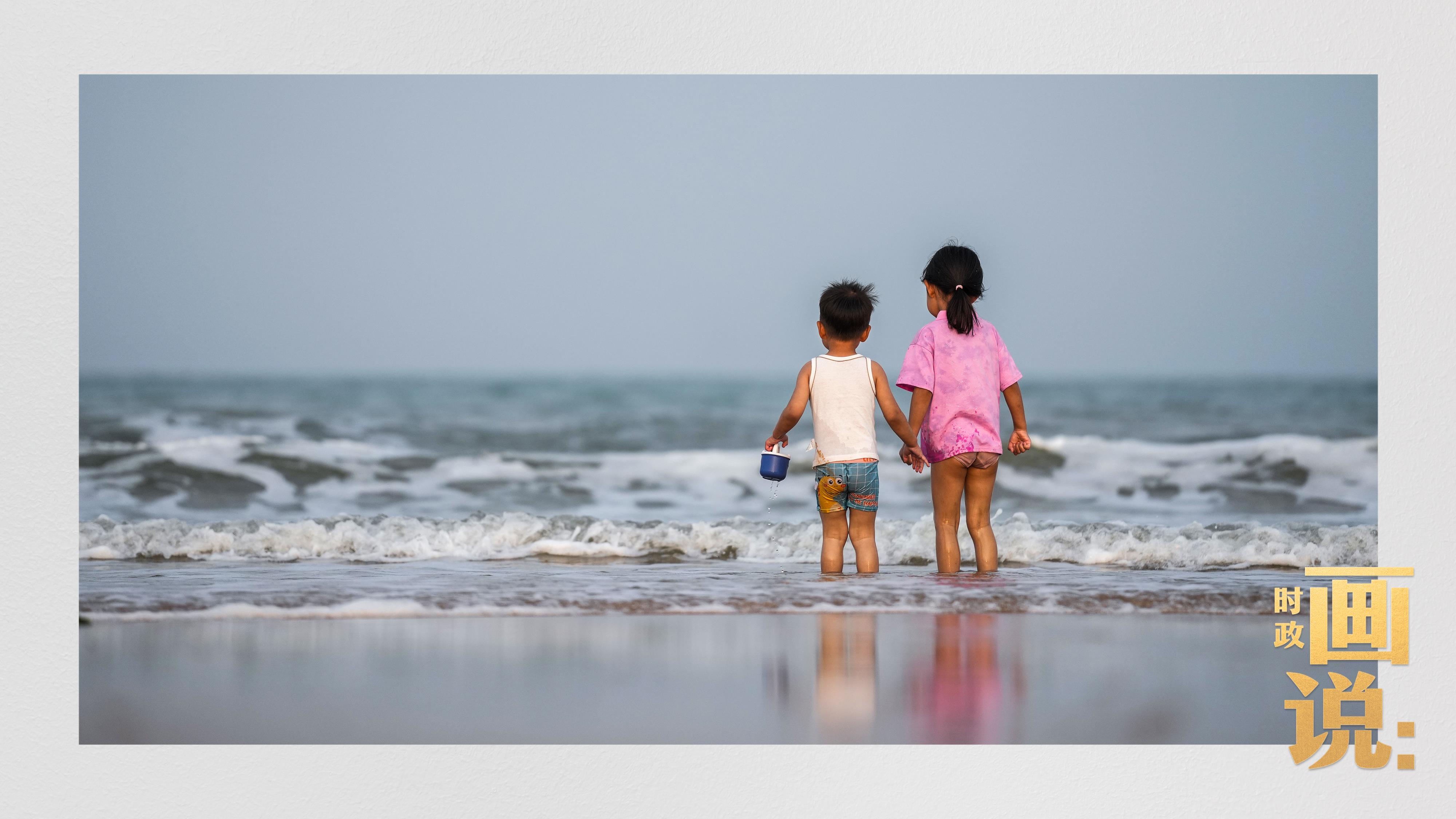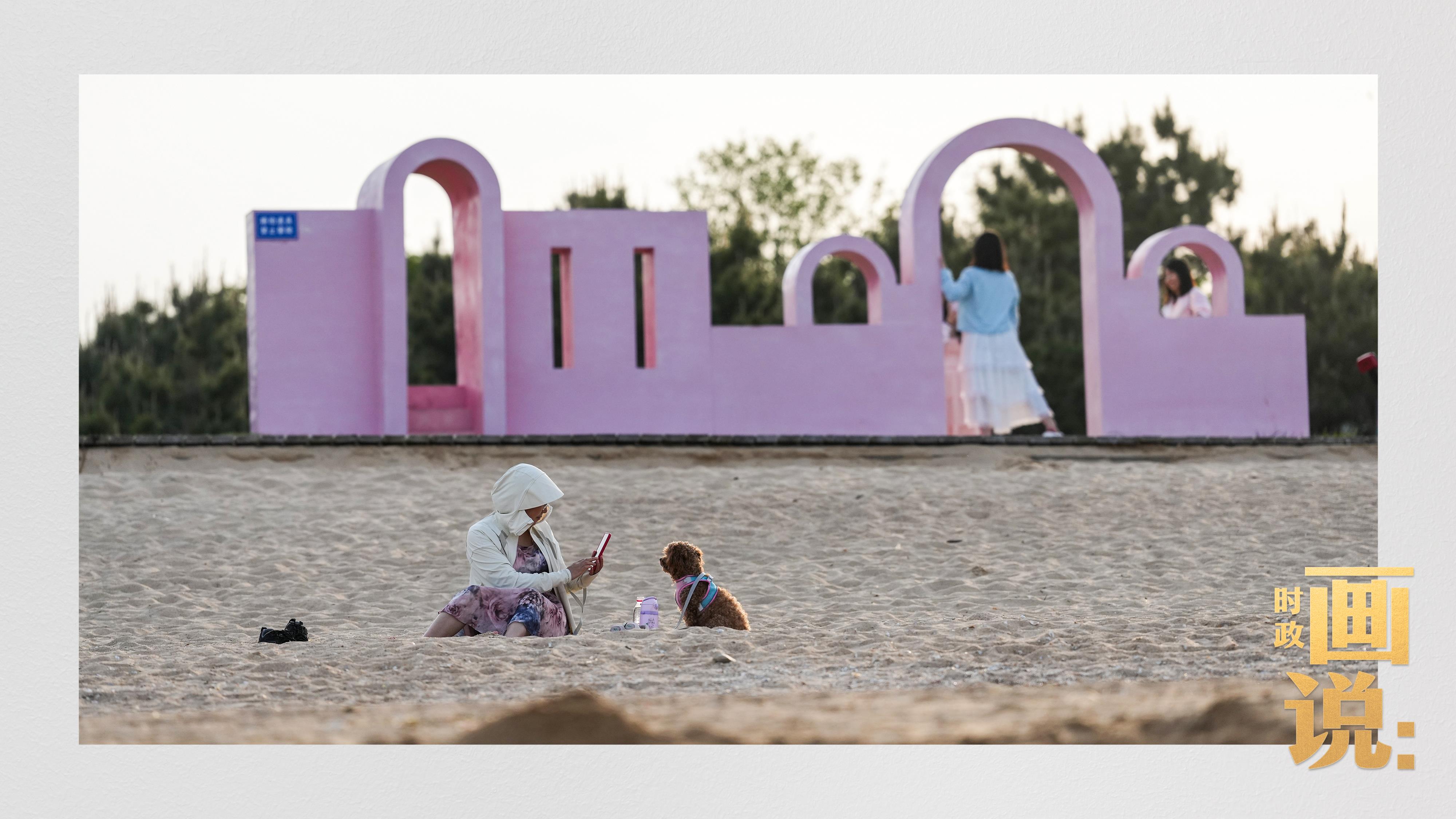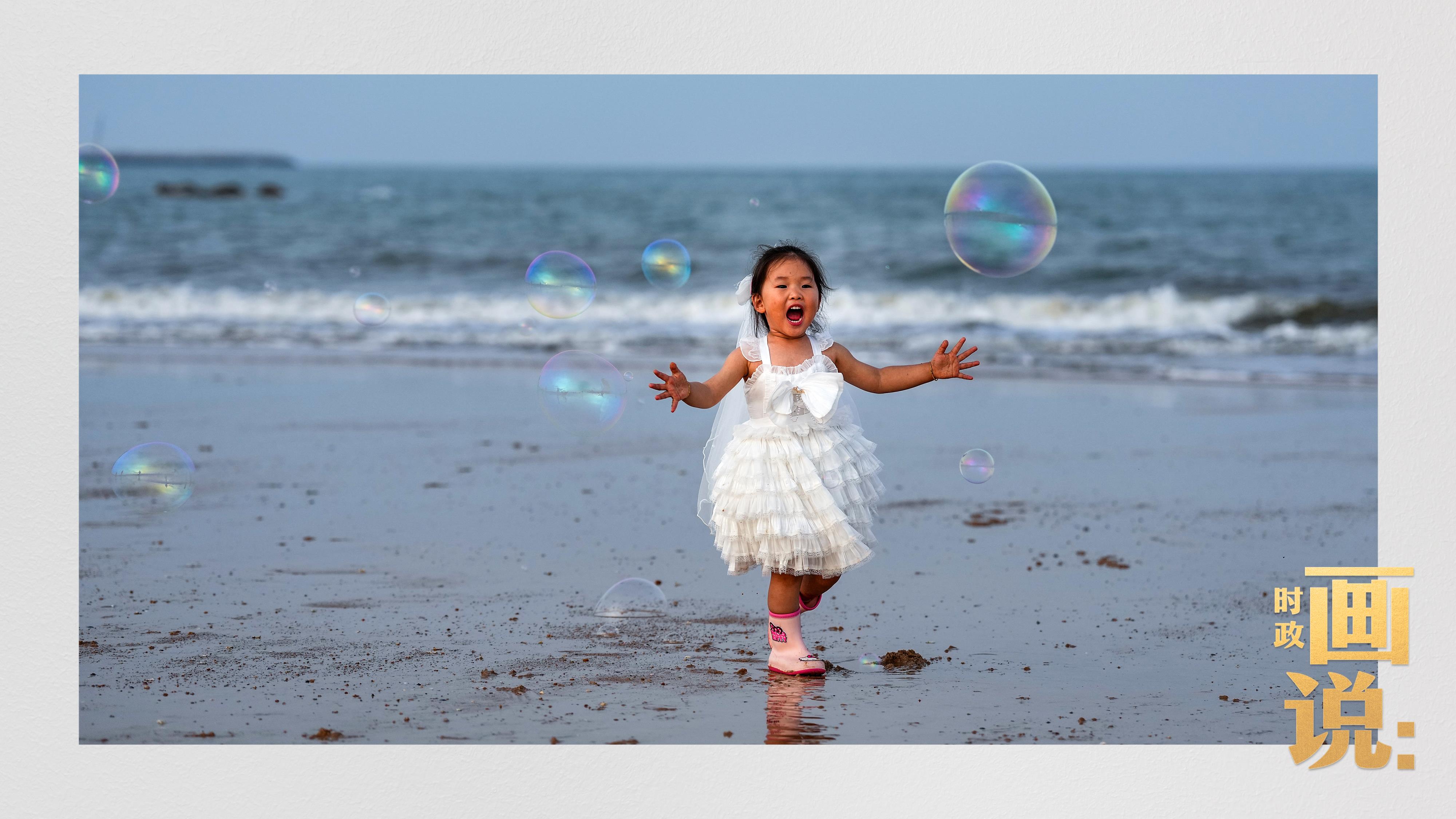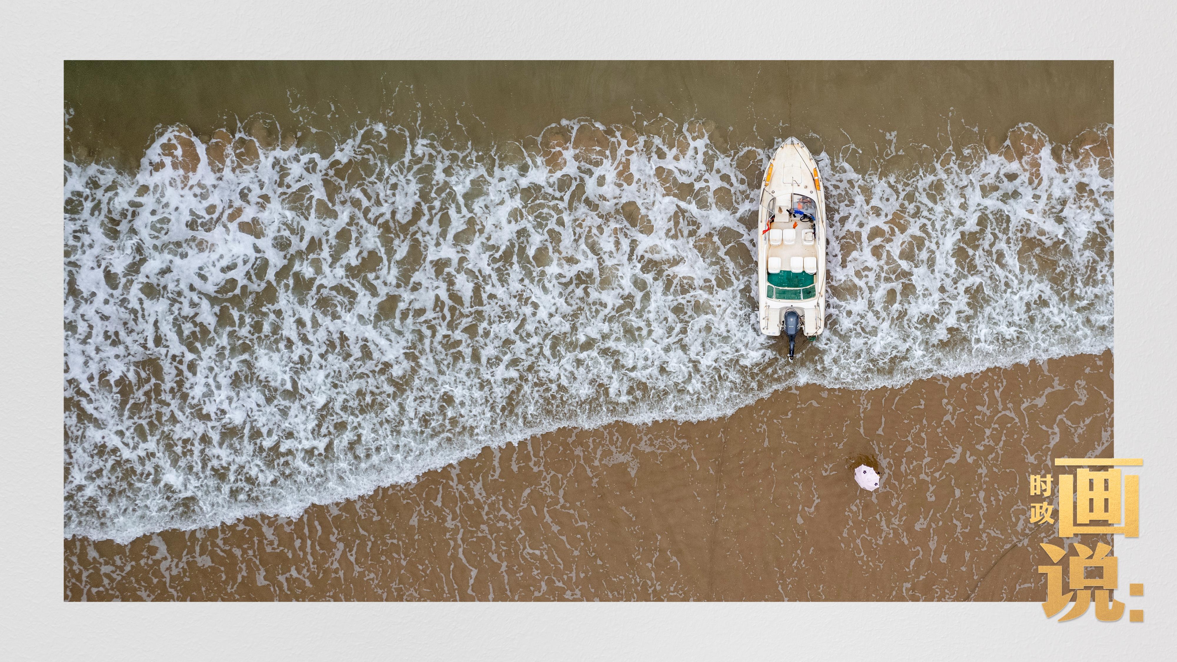△日照陽光海岸綠道上的萬(wan) 平口景區,一對遊客在海浪中翩然起舞。