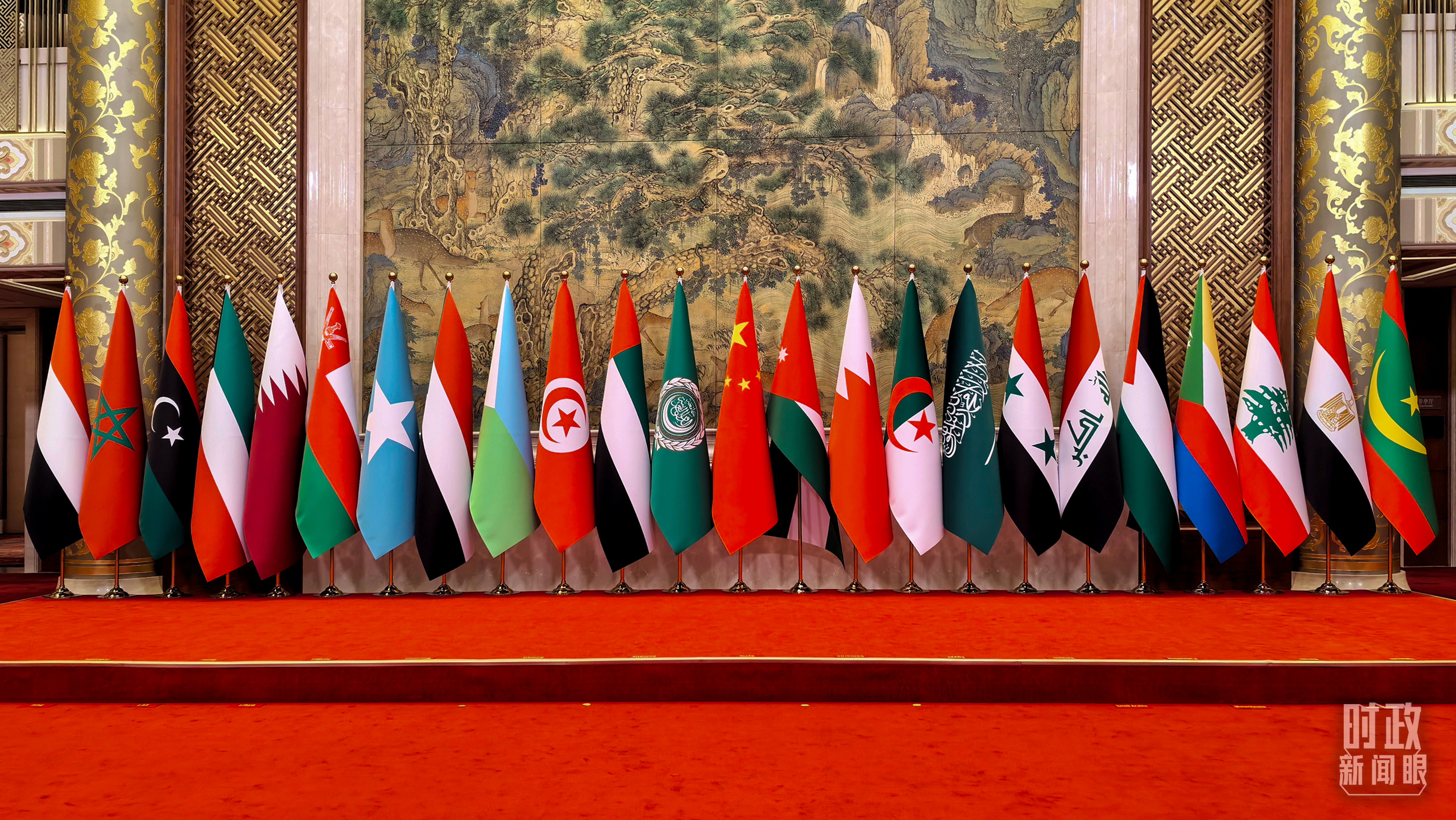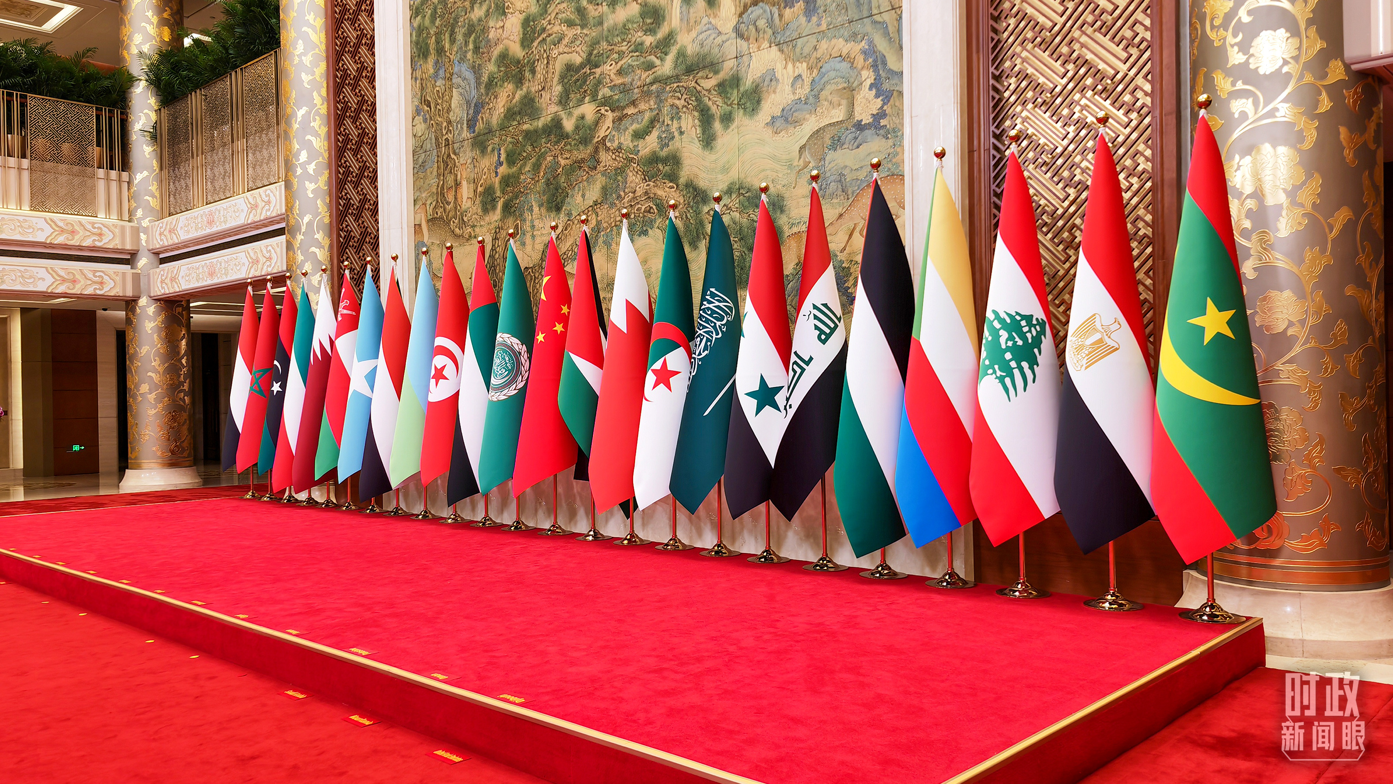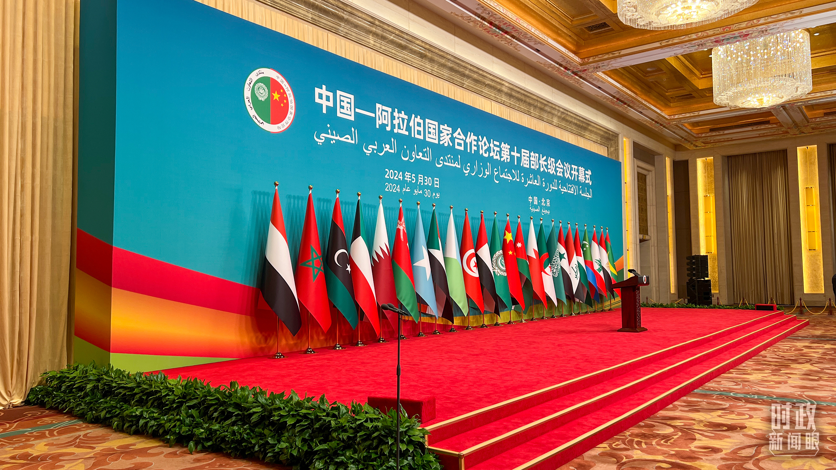 5月30日上午,北京釣魚台芳華苑內(nei) ,中國和22個(ge) 阿拉伯國家國旗以及阿盟旗幟相映成輝。中阿合作論壇第十屆部長級會(hui) 議開幕式在這裏舉(ju) 行。