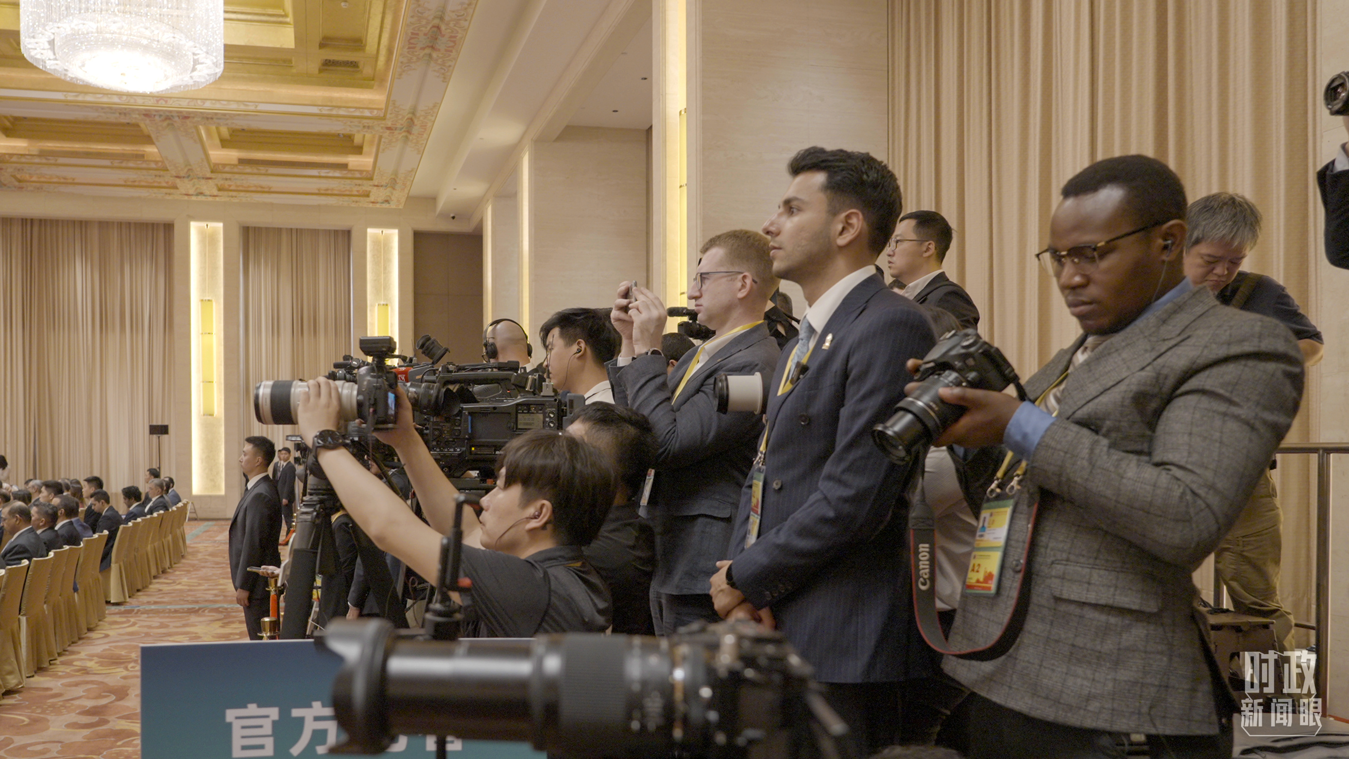 外國媒體(ti) 拍攝現場旗陣。(總台國廣記者李晉拍攝)