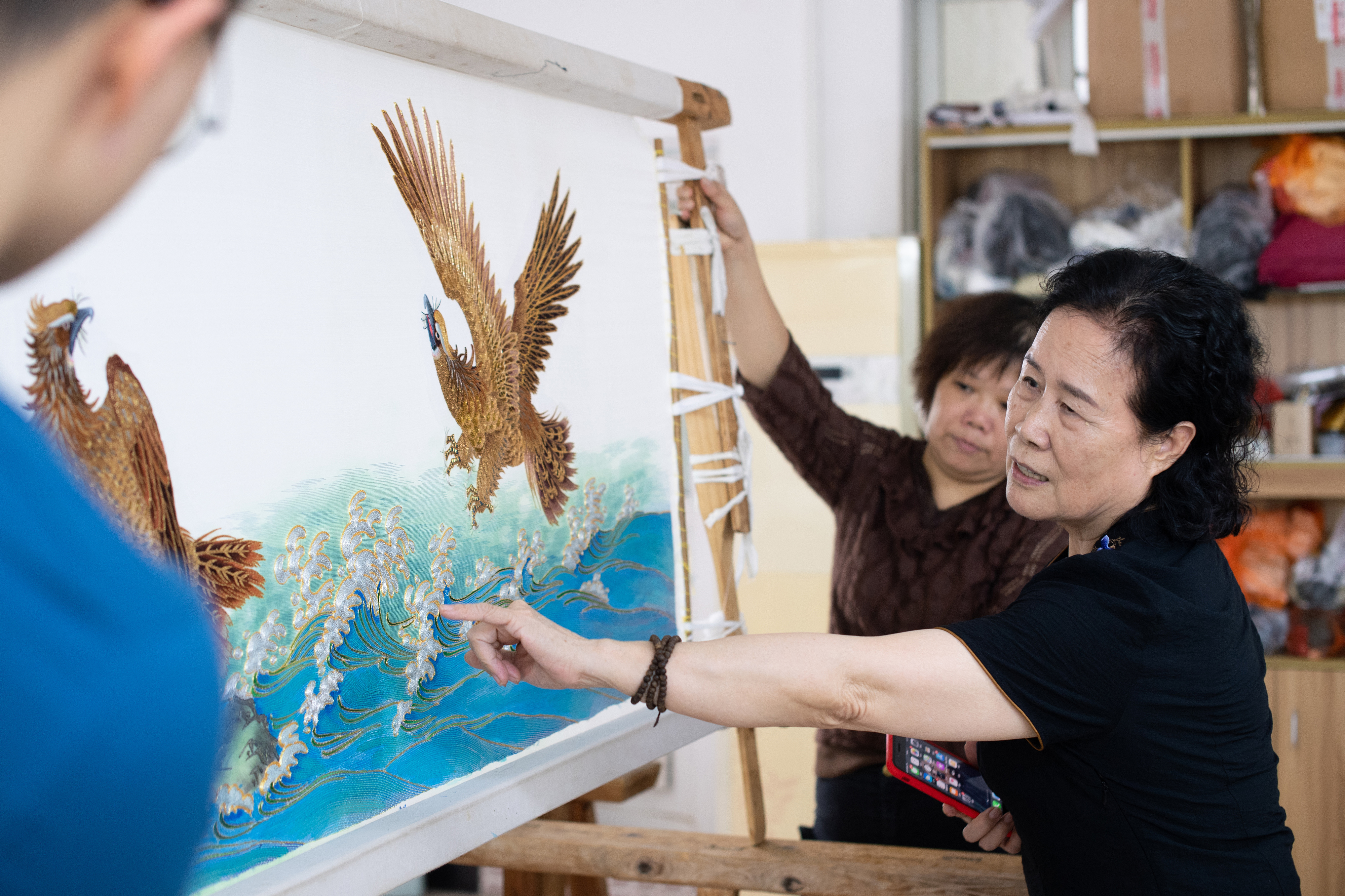 國家級非物質文化遺產(chan) 代表性項目粵繡(潮繡)代表性傳(chuan) 承人康惠芳。