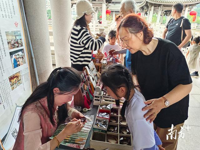 廣濟橋上,“潮玩古城·潮州非遺集市”活動吸引遊客體(ti) 驗。