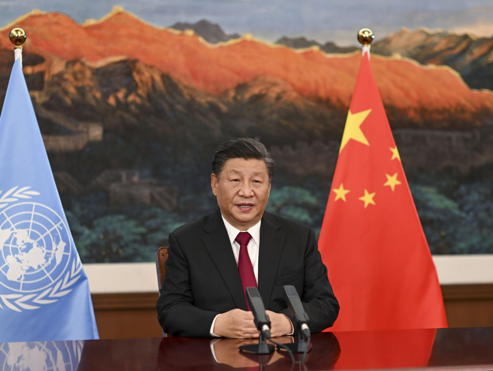 2021年10月12日,習(xi) 近平主席以視頻方式出席《生物多樣性公約》第十五次締約方大會(hui) 領導人峰會(hui) 並發表主旨講話。 新華社記者 李學仁 攝