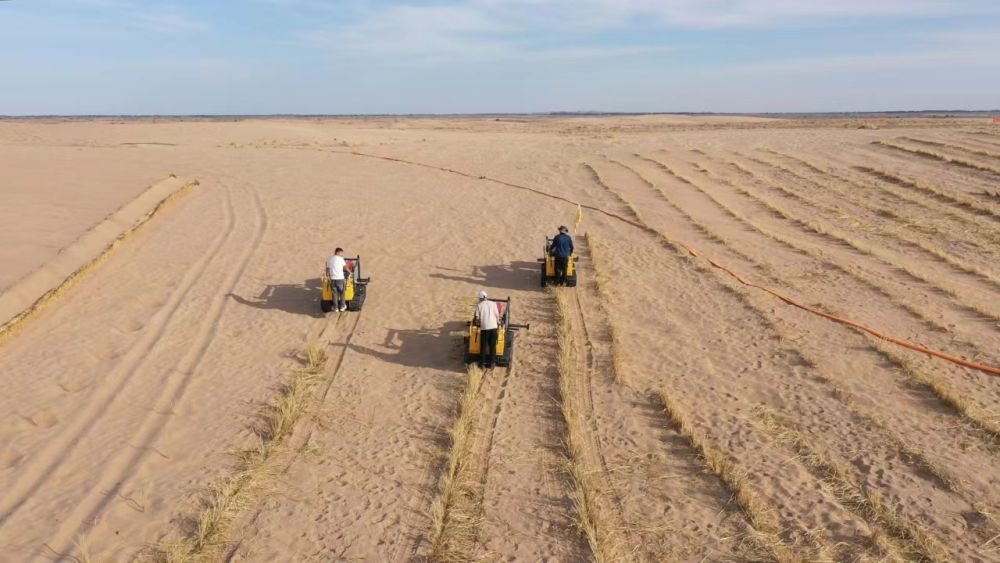 如今,運輸苗木的無人機、沙障鋪設機、固沙機等多種機械越來越多地運用於(yu) “三北”工程攻堅戰區域,科技的力量不斷助力提升治沙效能、延伸祖國北疆的綠色版圖。