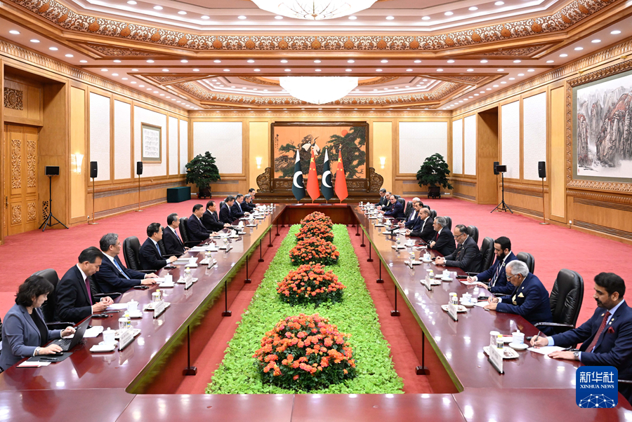 6月7日下午,國家主席習(xi) 近平在北京人民大會(hui) 堂會(hui) 見來華正式訪問的巴基斯坦總理夏巴茲(zi) 。新華社記者 黃敬文 攝