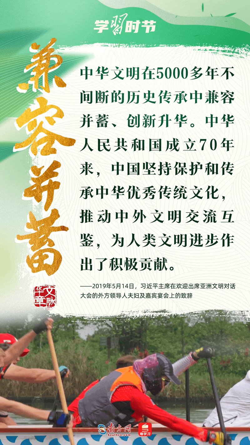 “中華優(you) 秀傳(chuan) 統文化是中華民族的精神命脈。”習(xi) 近平總書(shu) 記強調,要努力從(cong) 中華民族世世代代形成和積累的優(you) 秀傳(chuan) 統文化中汲取營養(yang) 和智慧,延續文化基因,萃取思想精華,展現精神魅力。讓我們(men) 深刻感悟總書(shu) 記的殷切寄語,一同感受龍舟競渡時的歡騰場景,從(cong) 中汲取中華民族血脈傳(chuan) 承中奔湧的精神力量。