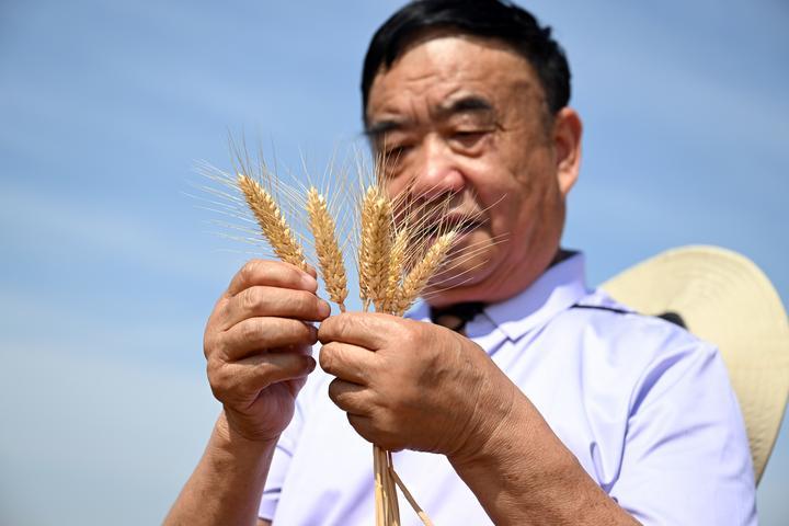 日頭正盛,71歲的種糧大戶徐淙祥深入田間,和農(nong) 技專(zhuan) 家們(men) 一起為(wei) 試驗麥種測產(chan) 。“穗大籽多粒飽滿,又是一個(ge) 豐(feng) 收年!”徐淙祥高興(xing) 地說。