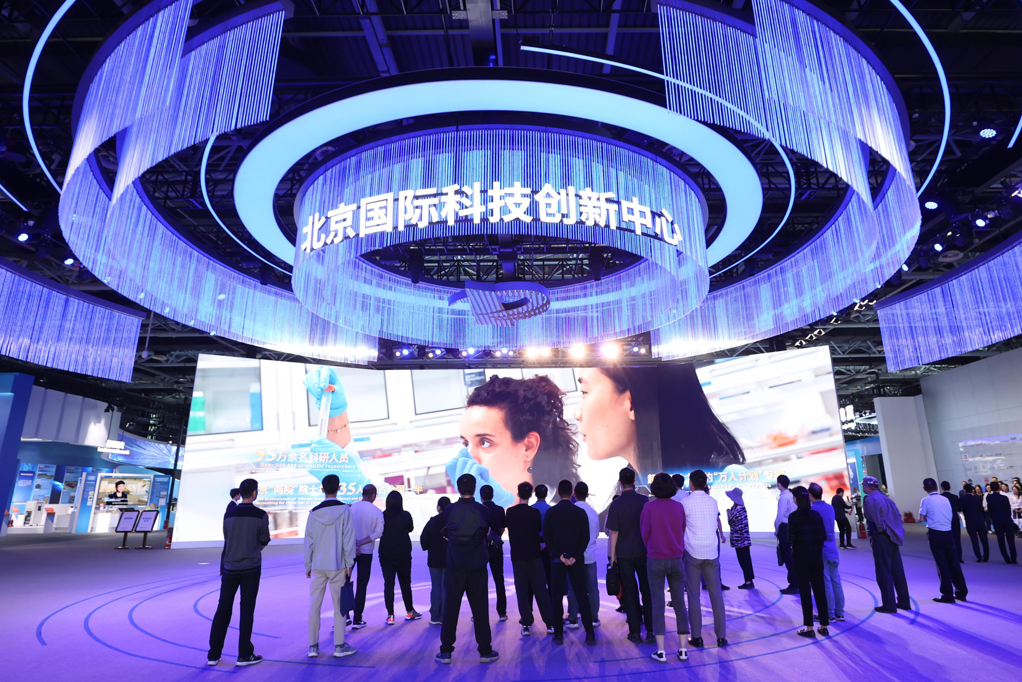 2024年5月11日,觀眾(zhong) 在中關(guan) 村展示中心觀看科技創新宣傳(chuan) 片。