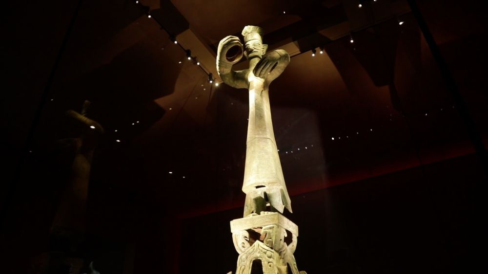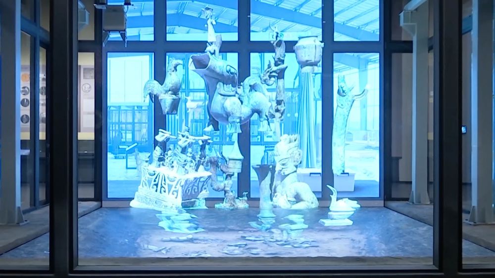 在一代一代考古工作者的手中,通天神樹、青銅縱目麵具、青銅鳥足神像……這些昔日蒙塵的器物恢複了原本的熠熠光彩。隨著三星堆博物館新館建成投用,文化與(yu) 科技在這裏充分融合。