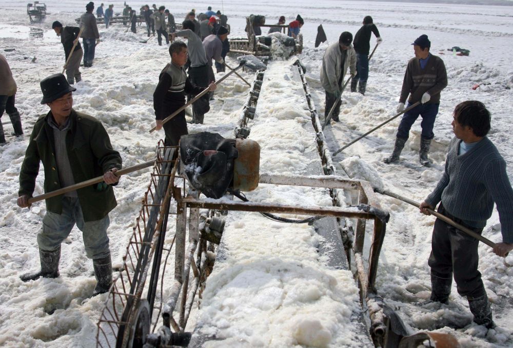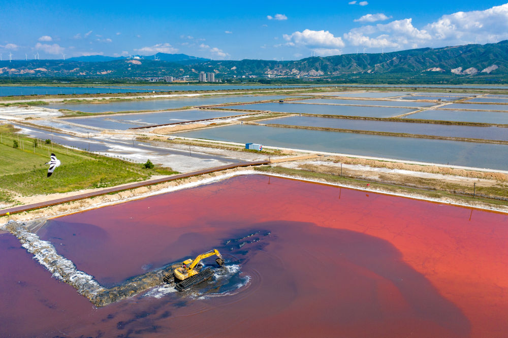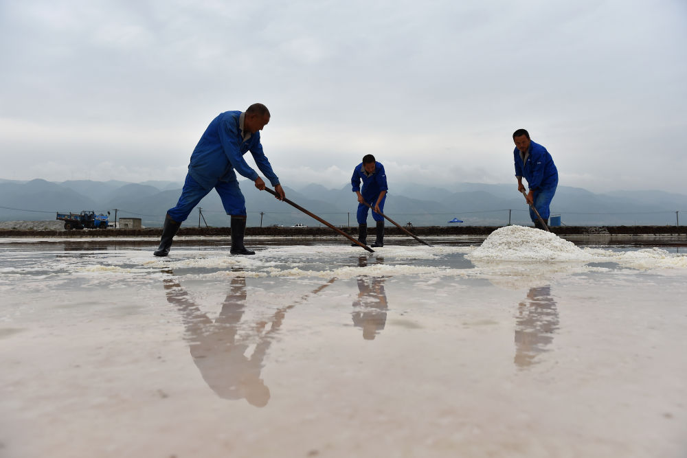 2016年8月25日,工人在運城鹽湖進行扒鹽作業(ye) 。