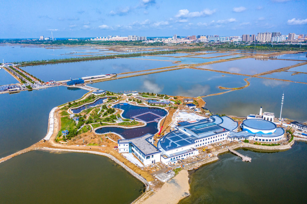 2024年4月30日拍攝的運城鹽湖全麵提升改造項目現場(無人機照片)。