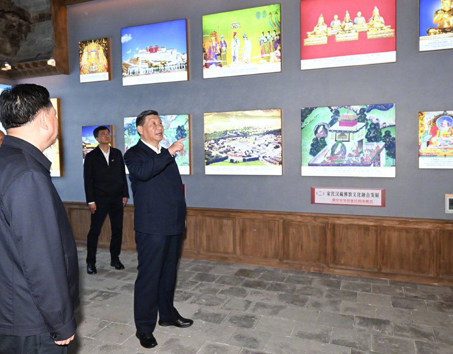 18日下午,習(xi) 近平總書(shu) 記在青海省考察調研。他先後來到西寧市的果洛西寧民族中學和宏覺寺,了解當地深入推進教育工作東(dong) 西部協作和對口支援、加強鑄牢中華民族共同體(ti) 意識教育和藏傳(chuan) 佛教界弘揚愛國愛教優(you) 良傳(chuan) 統、促進民族團結進步等情況。