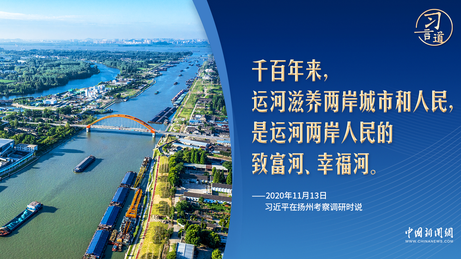 “千百年來,運河滋養(yang) 兩(liang) 岸城市和人民,是運河兩(liang) 岸人民的致富河、幸福河。”2020年考察揚州運河三灣生態文化公園時,習(xi) 近平一句“致富河、幸福河”指出了運河保護的更深意涵。