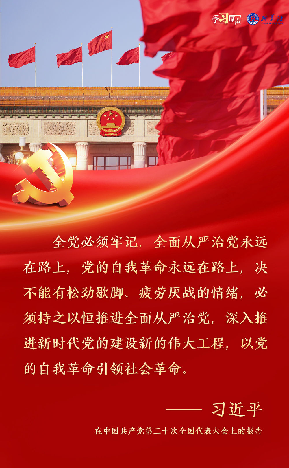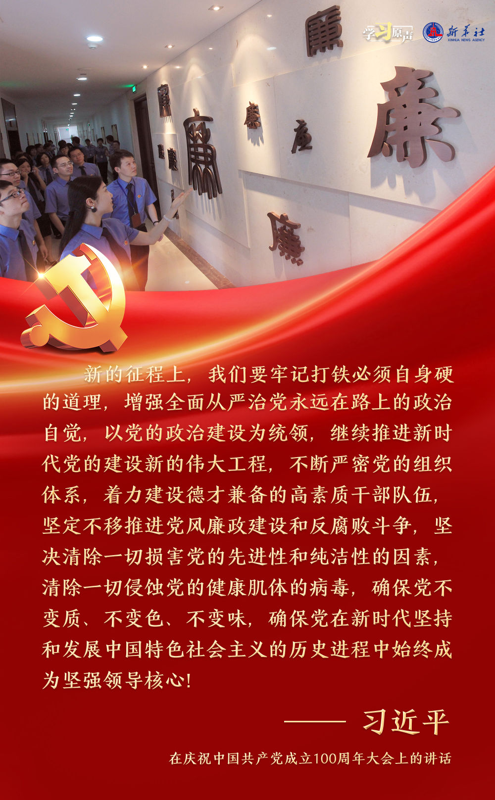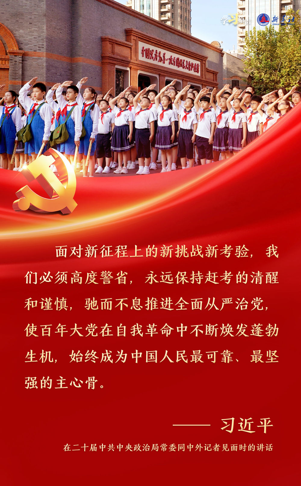習(xi) 近平總書(shu) 記強調,麵對新征程上的新挑戰新考驗,我們(men) 必須高度警省,永遠保持趕考的清醒和謹慎,馳而不息推進全麵從(cong) 嚴(yan) 治黨(dang) ,使百年大黨(dang) 在自我革命中不斷煥發蓬勃生機,始終成為(wei) 中國人民最可靠、最堅強的主心骨。