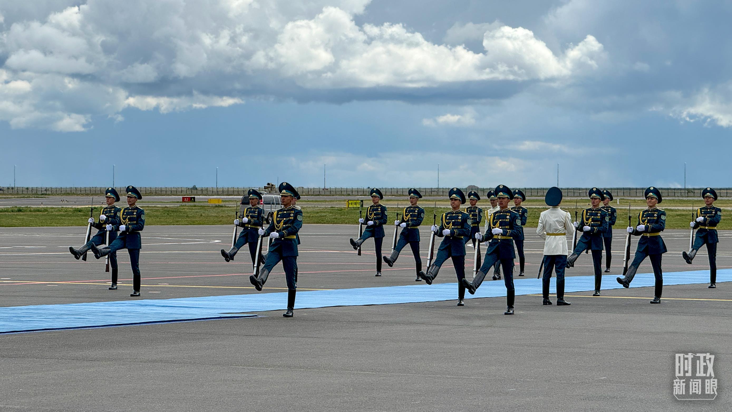 托卡耶夫總統在機場為(wei) 習(xi) 主席舉(ju) 行了盛大隆重的迎賓儀(yi) 式。100餘(yu) 名儀(yi) 仗兵英姿挺拔,軍(jun) 樂(le) 團奏響迎賓曲和迎賓號角。近百名哈薩克斯坦兒(er) 童揮舞中哈兩(liang) 國國旗,歡呼“您好”,熱烈歡迎習(xi) 主席到訪。