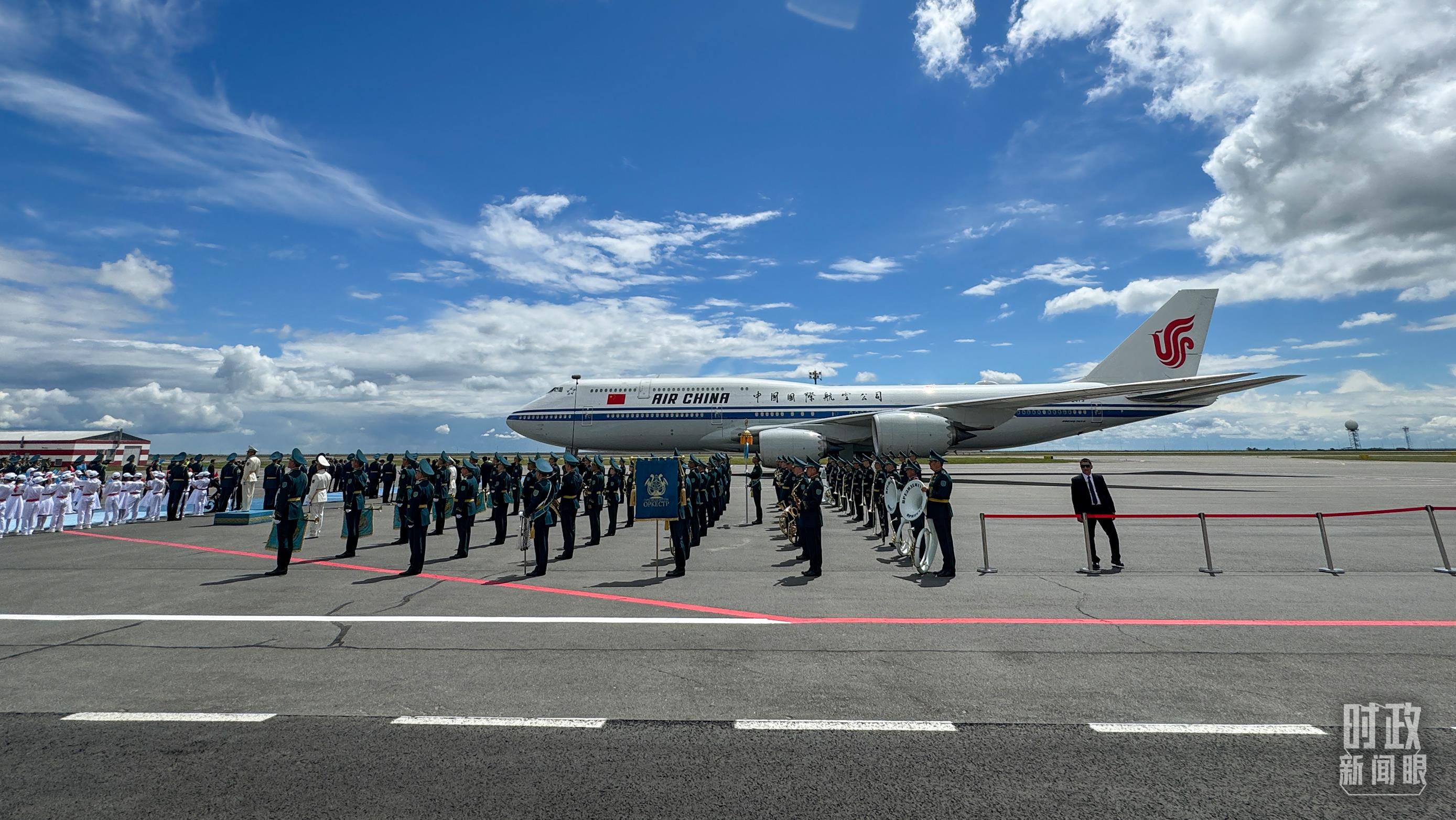習(xi) 主席乘專(zhuan) 機抵達阿斯塔納。(總台央視記者鬱振一拍攝)