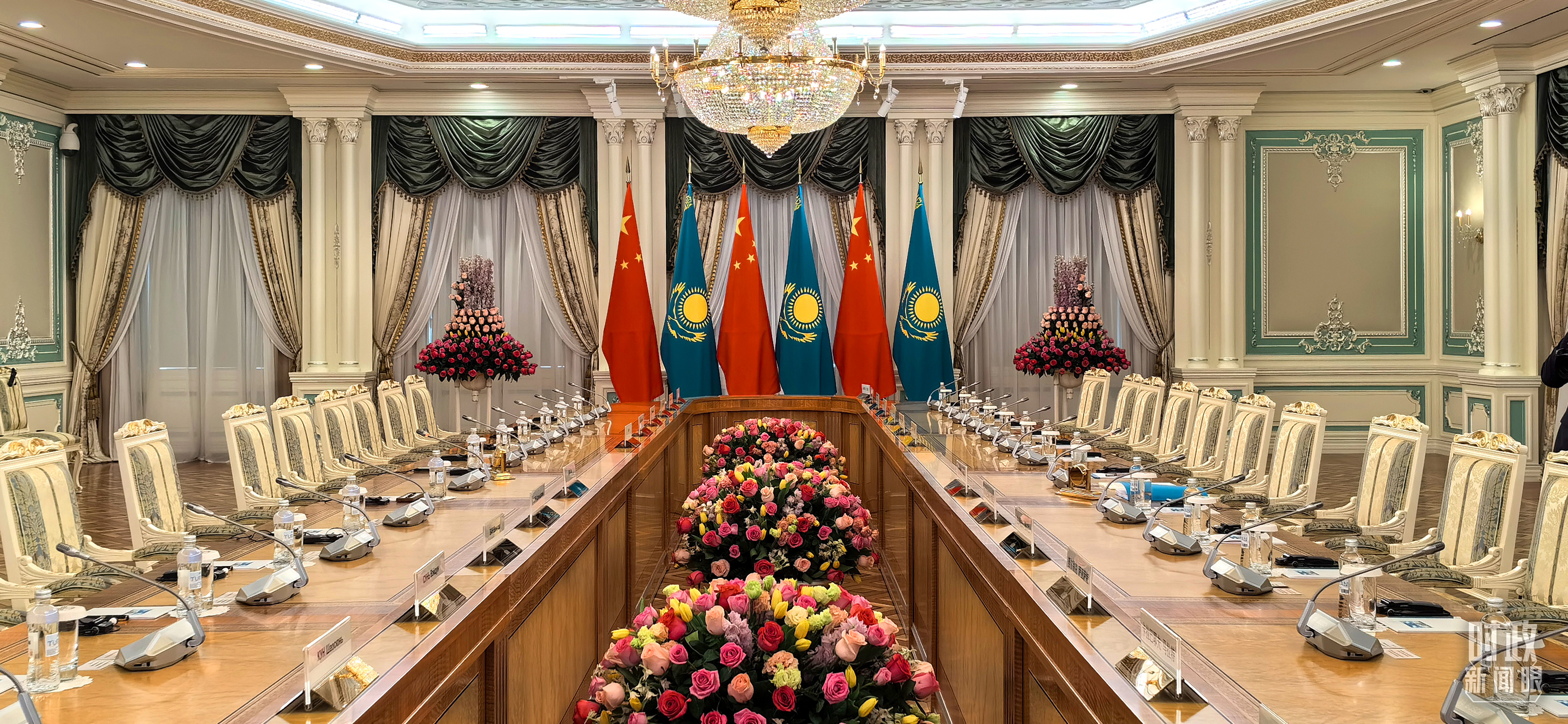 中哈元首大範圍會(hui) 談開始前的現場。(總台央視記者馬超拍攝)