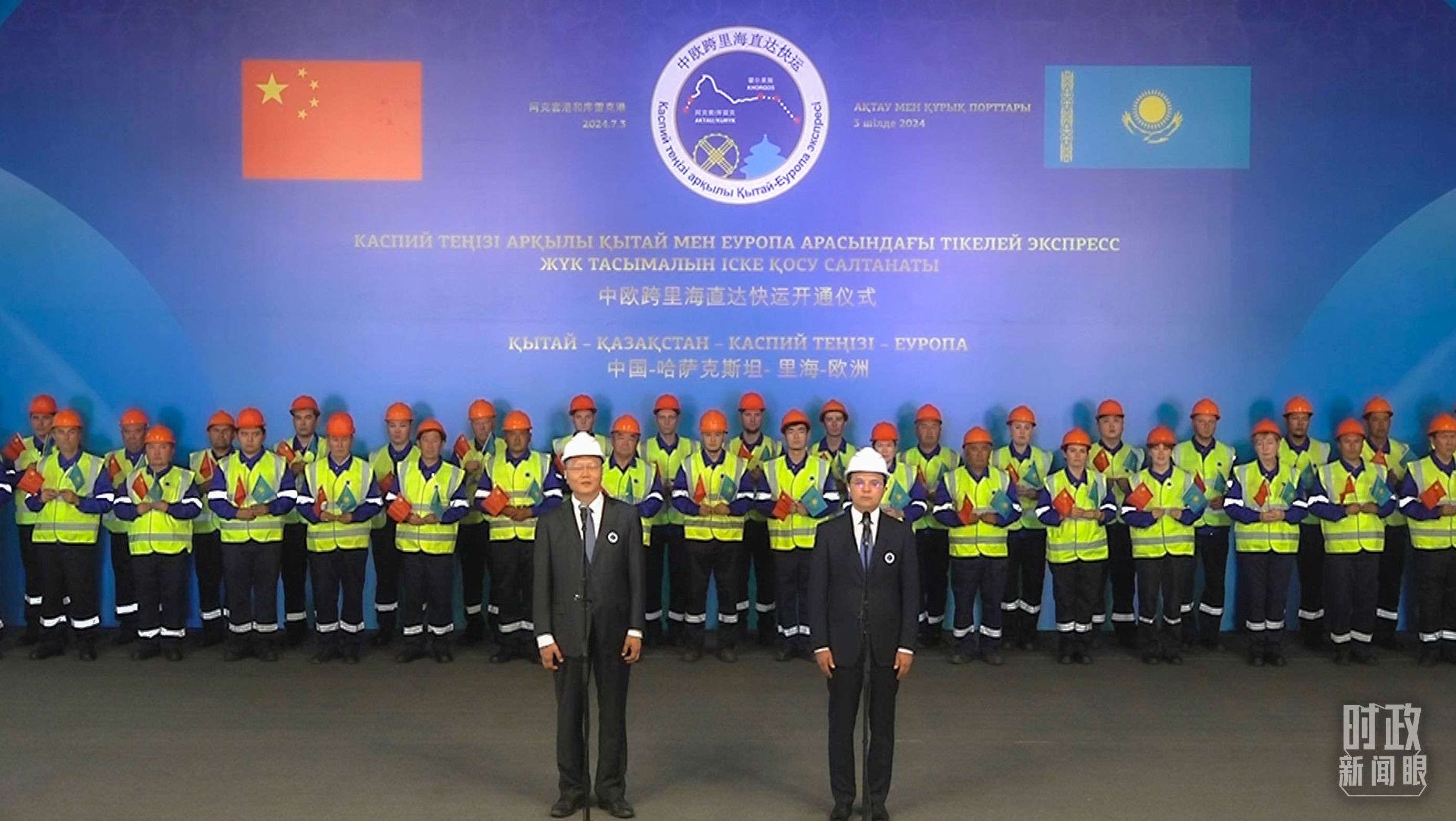 中歐跨裏海直達快運開通儀(yi) 式現場。