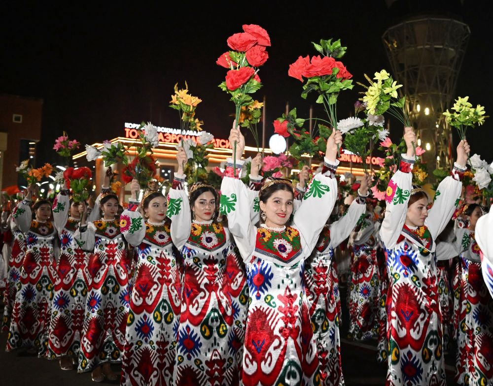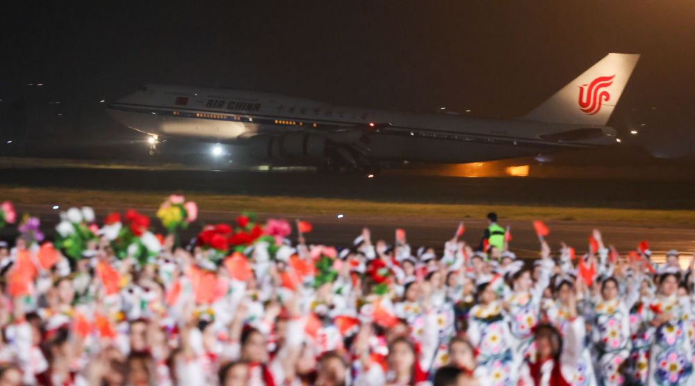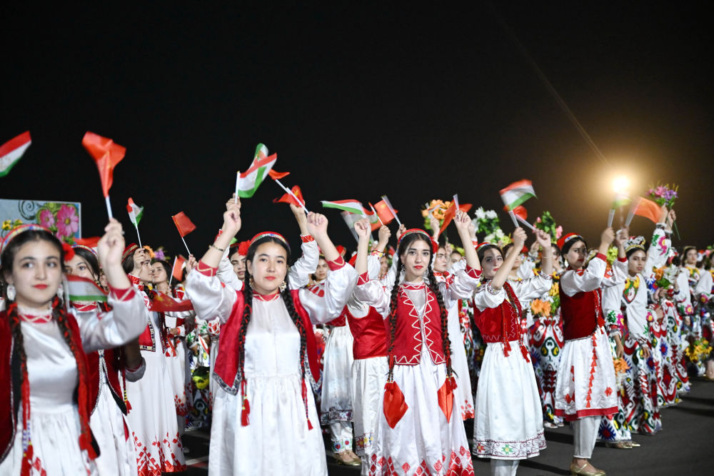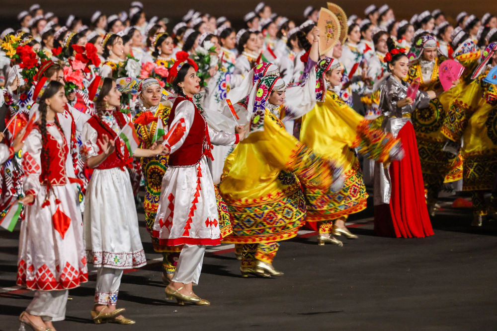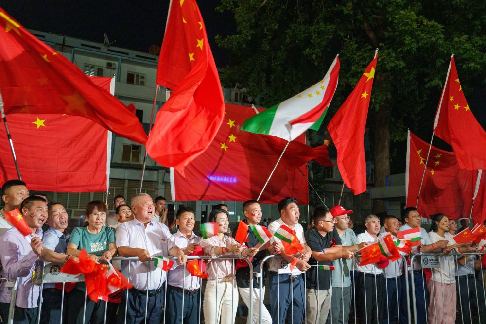 拉赫蒙在機場為(wei) 習(xi) 近平舉(ju) 行盛大隆重的迎賓儀(yi) 式。1500多名身著民族盛裝的塔吉克斯坦青年表演富有濃鬱特色的中塔歌舞,揮舞中塔兩(liang) 國國旗,表達對中國最尊貴客人的熱烈歡迎。