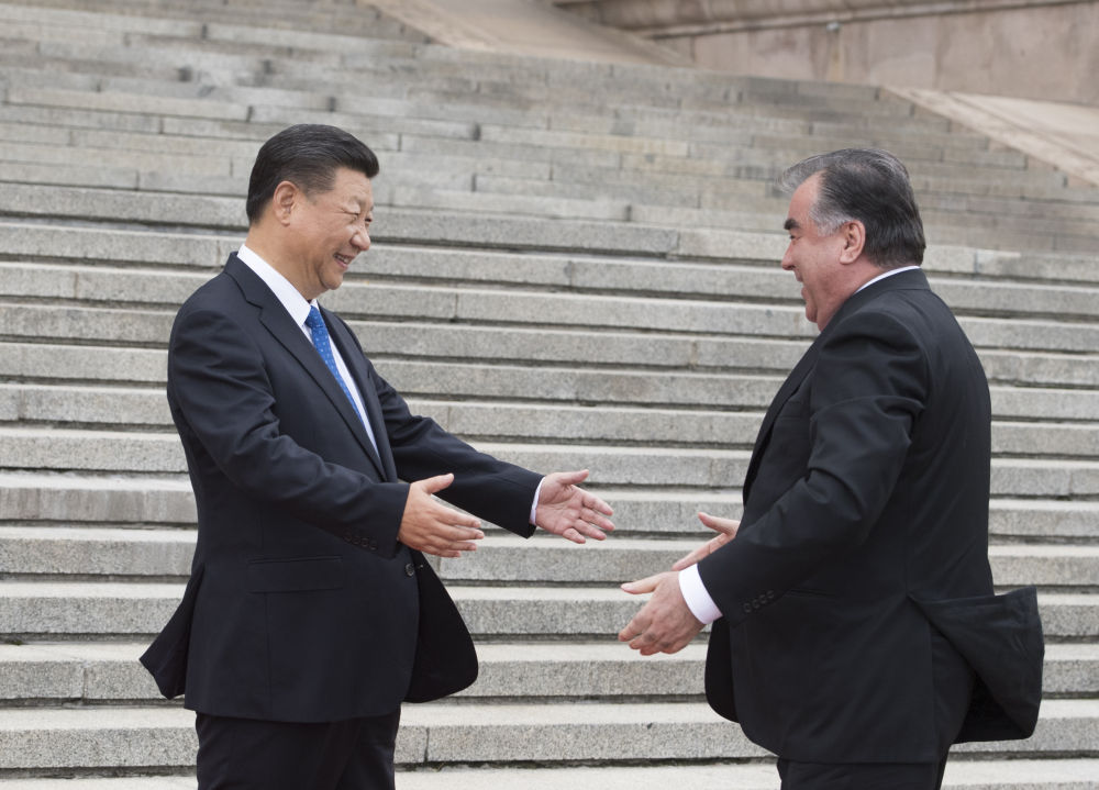 2017年8月31日,國家主席習(xi) 近平在北京人民大會(hui) 堂同來華進行國事訪問並出席新興(xing) 市場國家與(yu) 發展中國家對話會(hui) 的塔吉克斯坦總統拉赫蒙舉(ju) 行會(hui) 談。這是會(hui) 談前,習(xi) 近平在人民大會(hui) 堂東(dong) 門外廣場歡迎拉赫蒙。