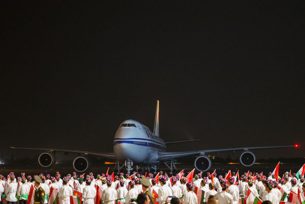 專(zhuan) 機抵達杜尚別國際機場時,拉赫蒙率高級官員熱情迎接。塔吉克斯坦兒(er) 童向習(xi) 近平獻花,用中、塔文歡迎習(xi) 近平主席到訪。兩(liang) 國元首在機場共同欣賞青年們(men) 表演的中塔歌舞。