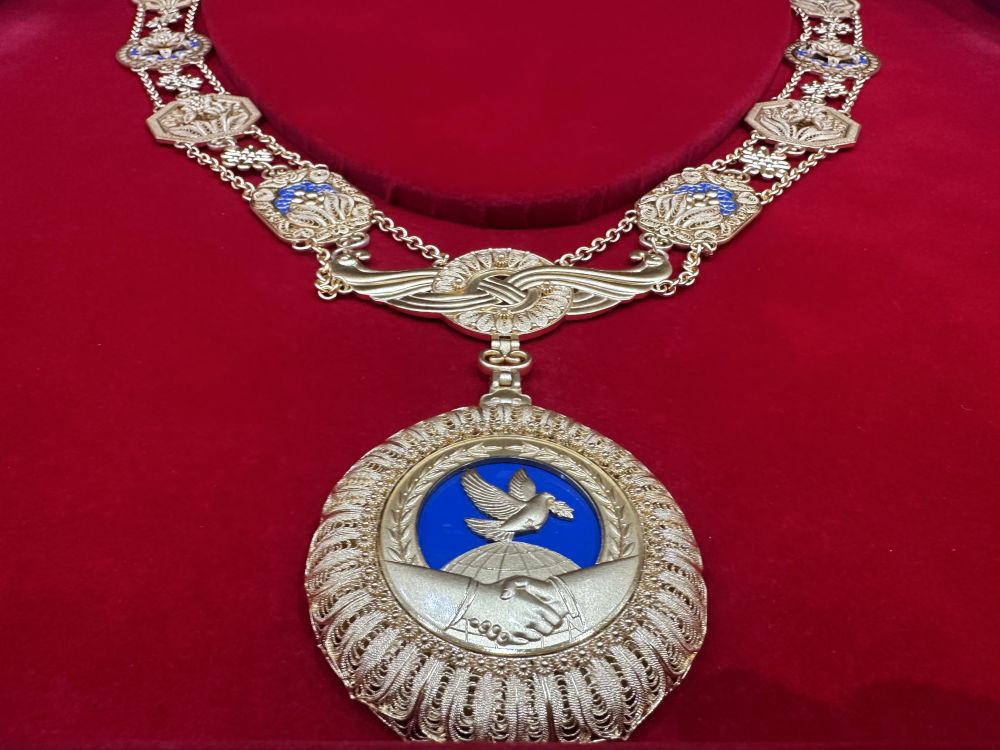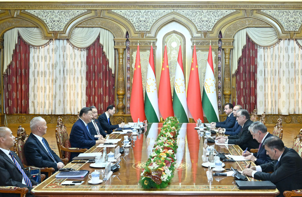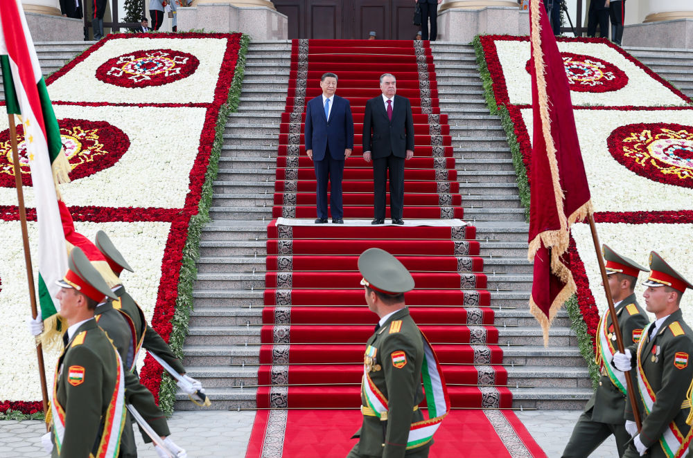 習(xi) 近平主席在杜尚別總統府舉(ju) 行隆重授勳儀(yi) 式,向拉赫蒙總統頒授“友誼勳章”。這是中方首次在境外舉(ju) 行勳章頒授儀(yi) 式。