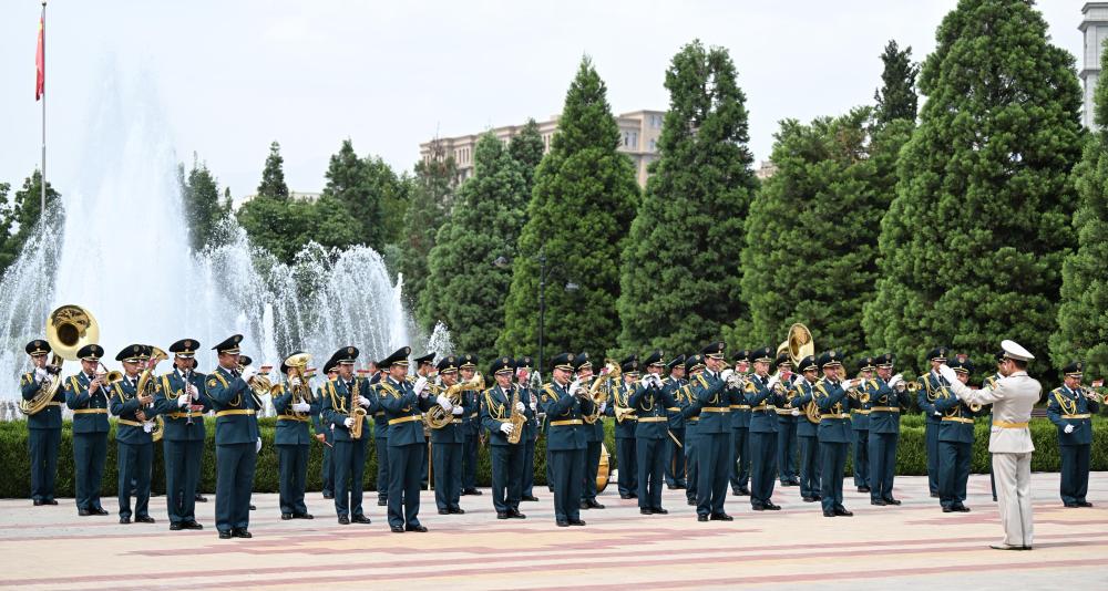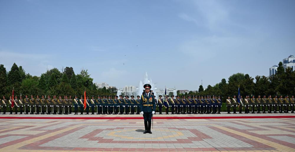 當地時間7月5日,拉赫蒙總統在總統府前廣場為(wei) 習(xi) 近平主席舉(ju) 行盛大隆重的歡迎儀(yi) 式。