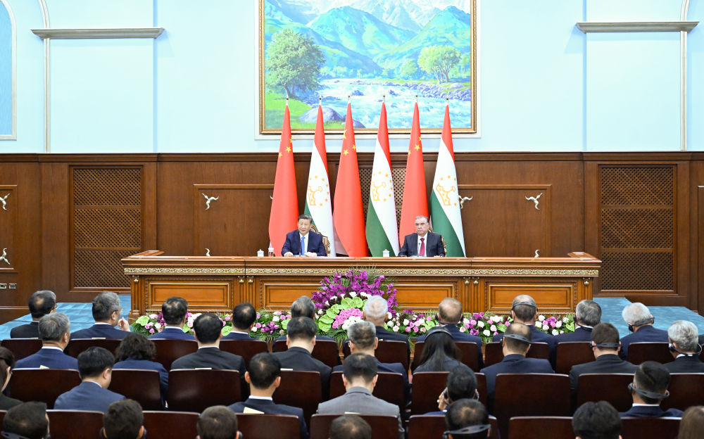 兩(liang) 國元首共同簽署《中華人民共和國和塔吉克斯坦共和國關(guan) 於(yu) 發展新時代全麵戰略合作夥(huo) 伴關(guan) 係的聯合聲明》,並共同見證交換經貿、投資、互聯互通、關(guan) 鍵礦產(chan) 、安全、人文等領域數十項雙邊合作文件。
