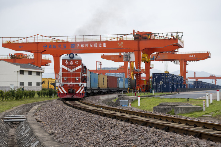 一列滿載貨物的“義(yi) 新歐”中歐班列發車。拍友 胡肖飛 攝