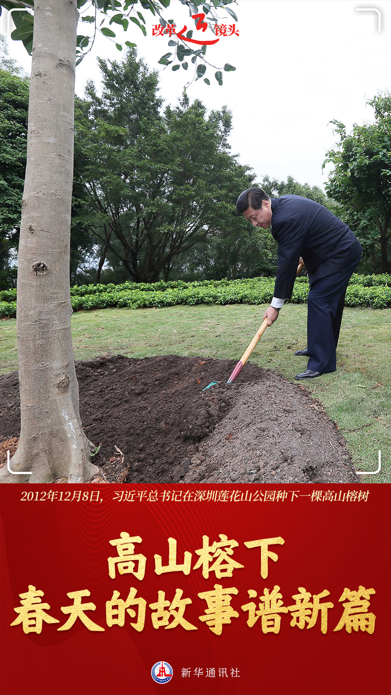 高山榕是嶺南本土樹種,四季常綠、蒼勁挺拔。1992年,鄧小平同誌在深圳仙湖植物園也曾親(qin) 手種下一棵高山榕。“高山榕的特質與(yu) 堅韌頑強、奮發向上的改革精神相契合。”時任深圳市蓮花山公園管理處主任楊義(yi) 標說。