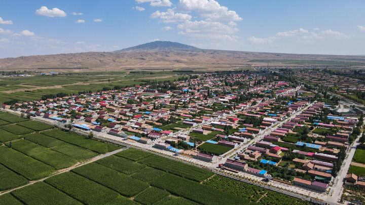 寧夏吳忠市紅寺堡區柳泉鄉(xiang) 永新村(2021年7月29日攝,無人機照片)。