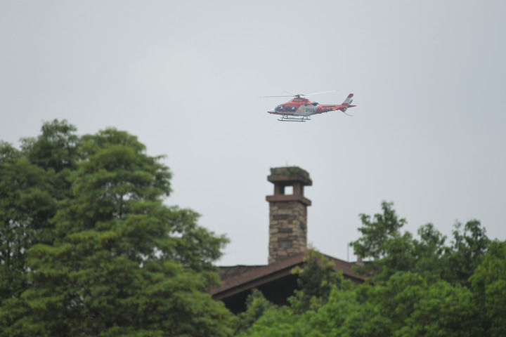 這是2024年6月20日在成都都江堰市青城山起降點拍攝的參與(yu) 驗證飛行的載人直升機。