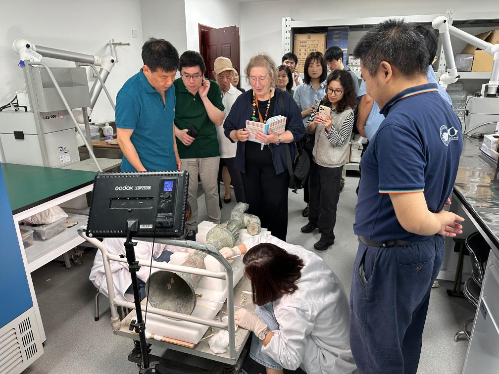 2024年5月28日,英國考古學家、牛津大學教授傑西卡·羅森在文物保護修複實驗室觀摩文物。新華社發(四川省文物考古研究院供圖)
