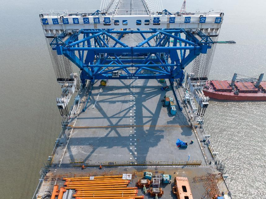在江蘇,長達1208米的世界最大跨度斜拉橋——常泰長江大橋全橋貫通。建設單位在大橋建設過程中投用了QMD-2000型全球最大噸位橋麵吊機,研發了抗拉強度高達2100兆帕的斜拉索,打造出國內(nei) 首條鋼桁梁全過程智能生產(chan) 線……依托5G、大數據、物聯網等信息技術,常泰長江大橋建設還實現了對施工全過程的“可知、可測、可控”。